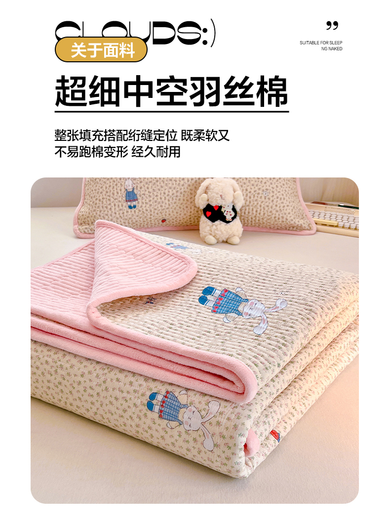 • 91家纺网 家纺一手货源 找家纺 X猫先生 2025新品棉加绒床盖一面全棉一面牛奶绒床盖炕盖加厚床单床垫四季款系列二 奶呼小兔(A棉B绒)
