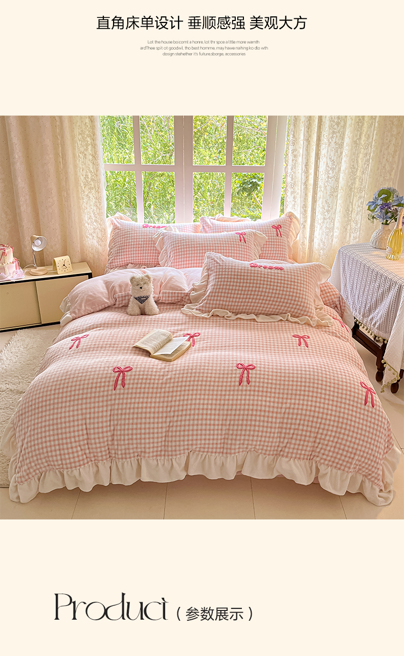 当前位置: 91家纺网 > 商品网购 > 床品套件 > 四件套 > 牛奶绒四件套 > 沐辰 2025新款牛奶绒绣花蝴蝶结花边款四件套 绒蝴蝶结-紫格