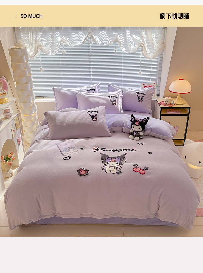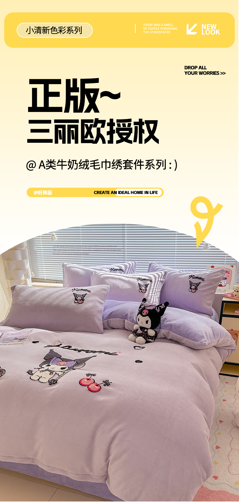当前位置: 91家纺网 > 商品网购 > 床品套件 > 四件套 > 牛奶绒四件套 > 沐辰 2025新款牛奶绒绣花三丽鸥系列四件套 酷酷库洛米