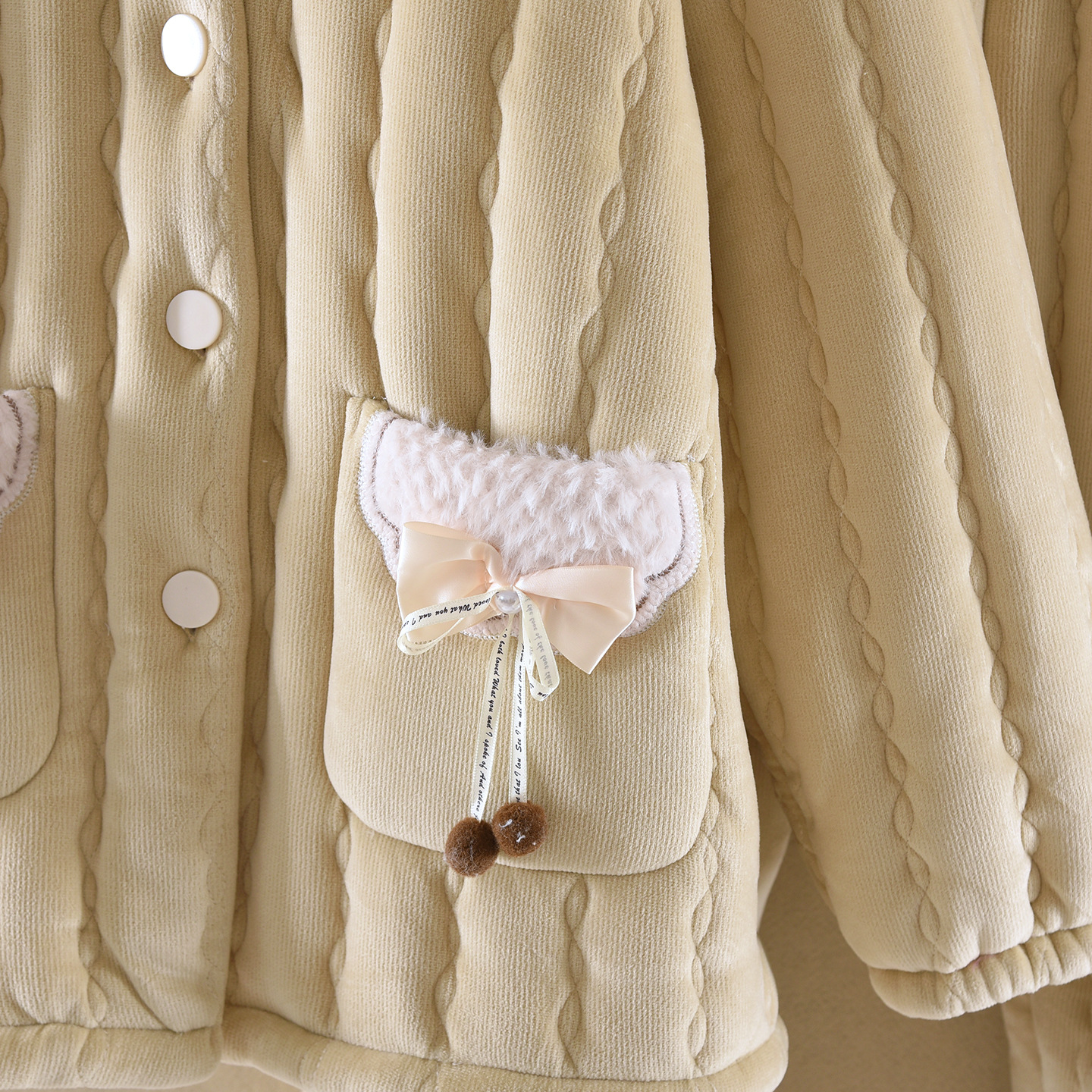 (总)洛兰沙家居馆 2024秋冬新款清新睡衣女三层夹棉玉兔绒加厚保暖两件套女士可外穿加绒家居服,粉色,黄色