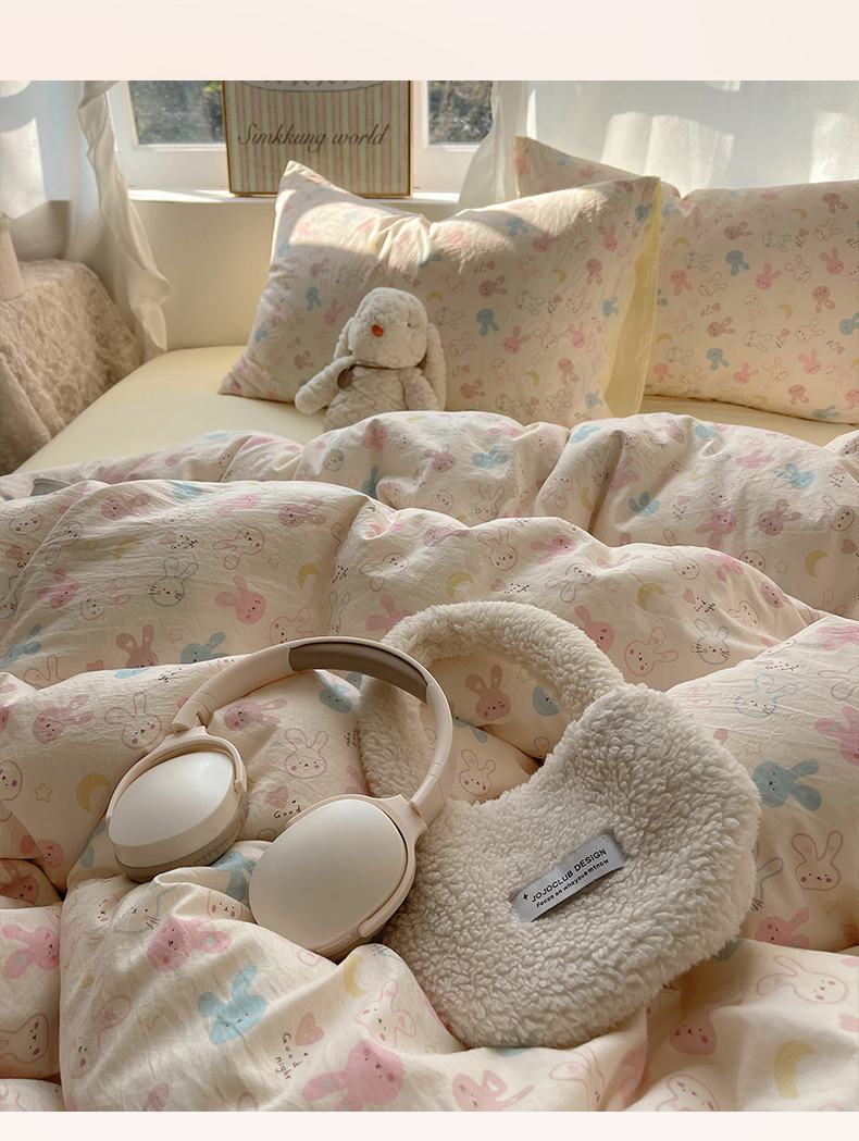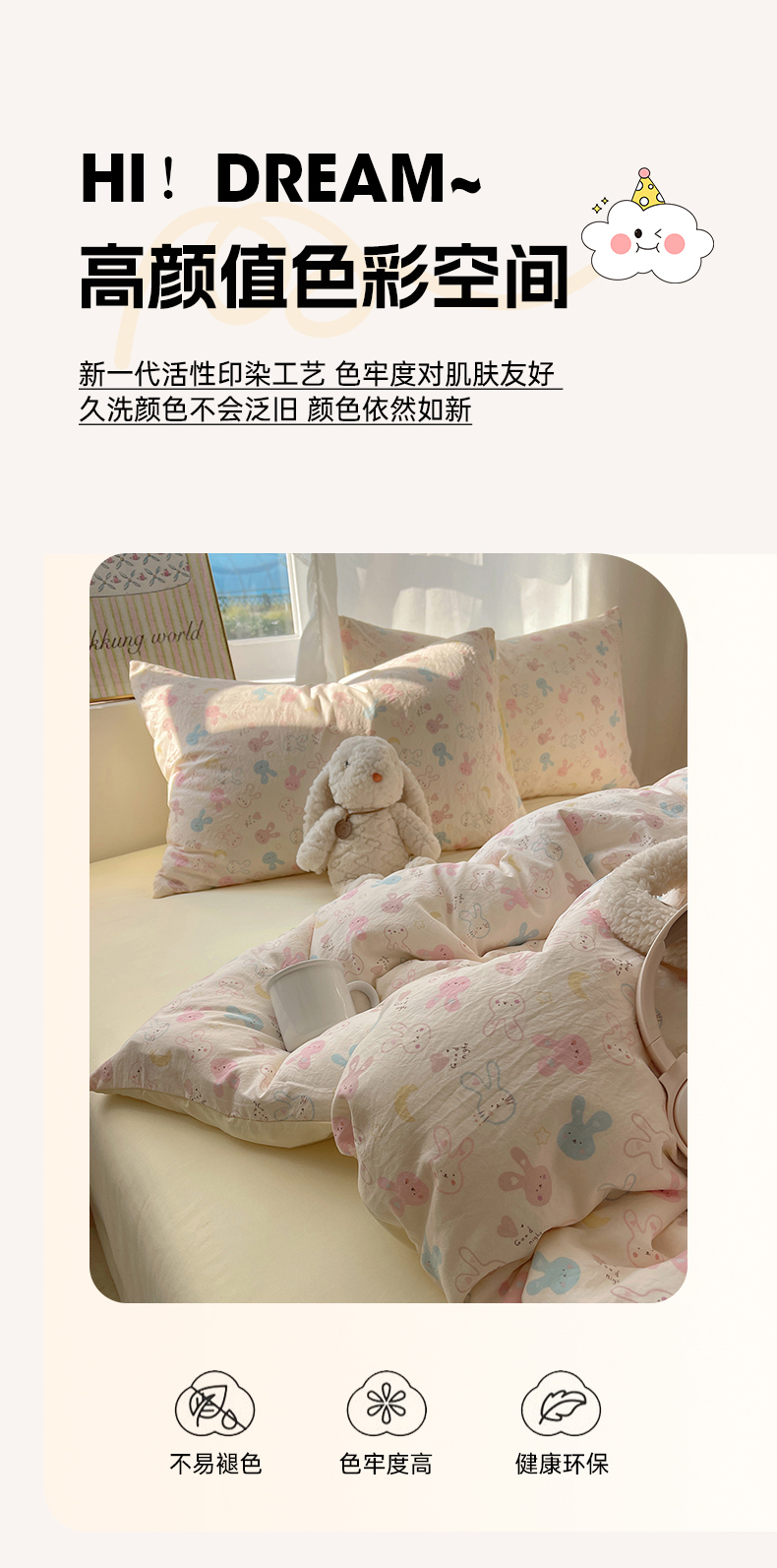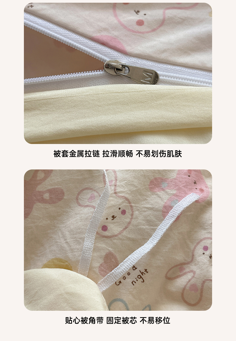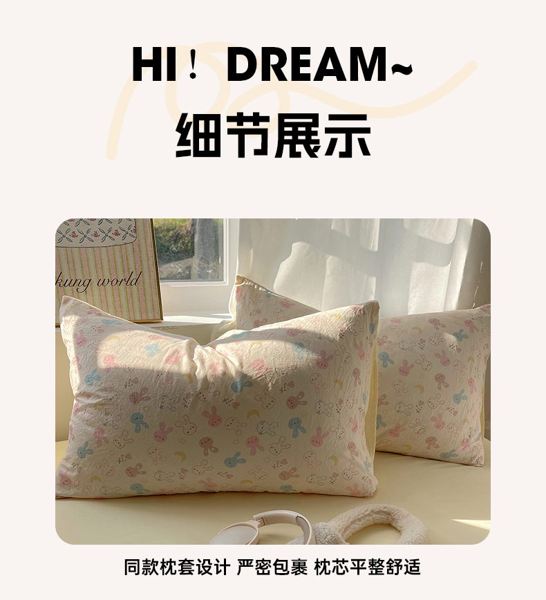 当前位置: 91家纺网 > 商品网购 > 床品套件 > 四件套 > 水洗棉四件套 > 初夏家纺 2026 古法仿棉水洗棉A类四件套被罩床单三件套床上用品卡通可爱【提供买家秀】 兔耳朵