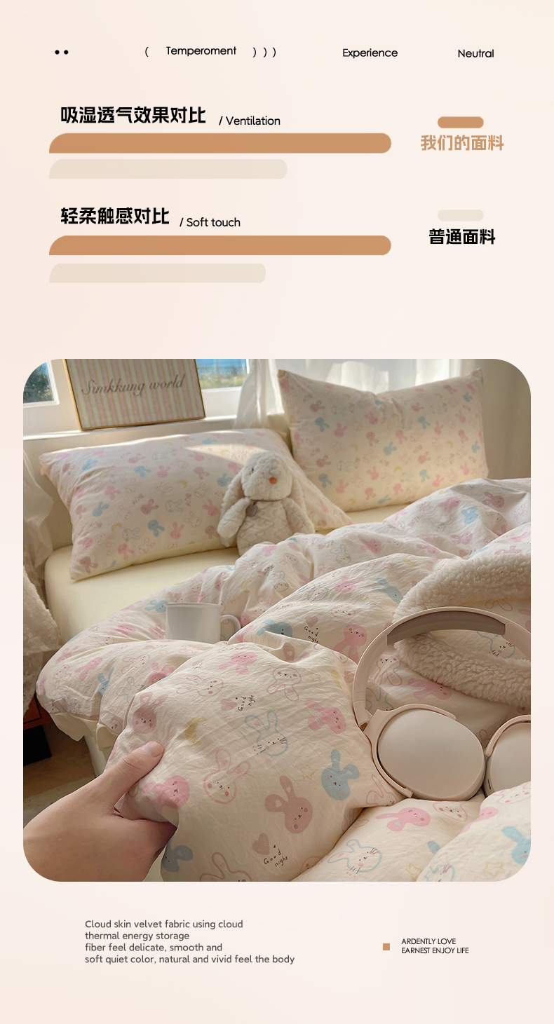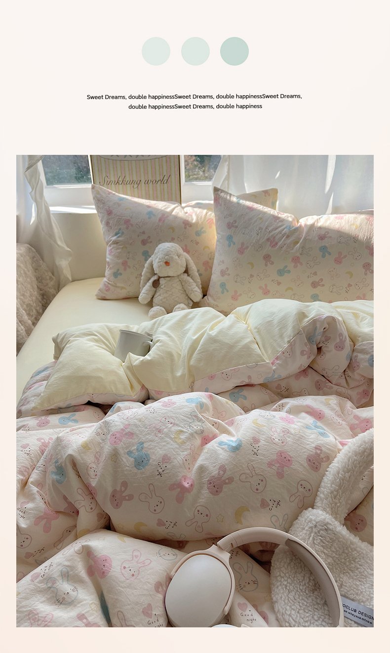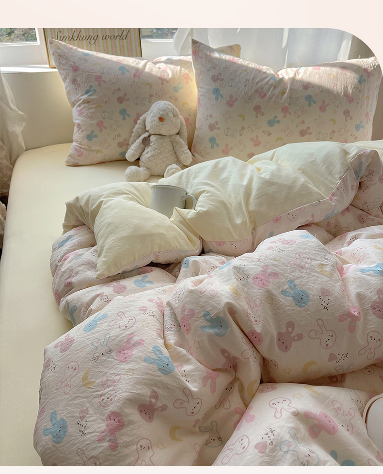 当前位置: 91家纺网 > 商品网购 > 床品套件 > 四件套 > 水洗棉四件套 > 初夏家纺 2026 古法仿棉水洗棉A类四件套被罩床单三件套床上用品卡通可爱【提供买家秀】 兔耳朵