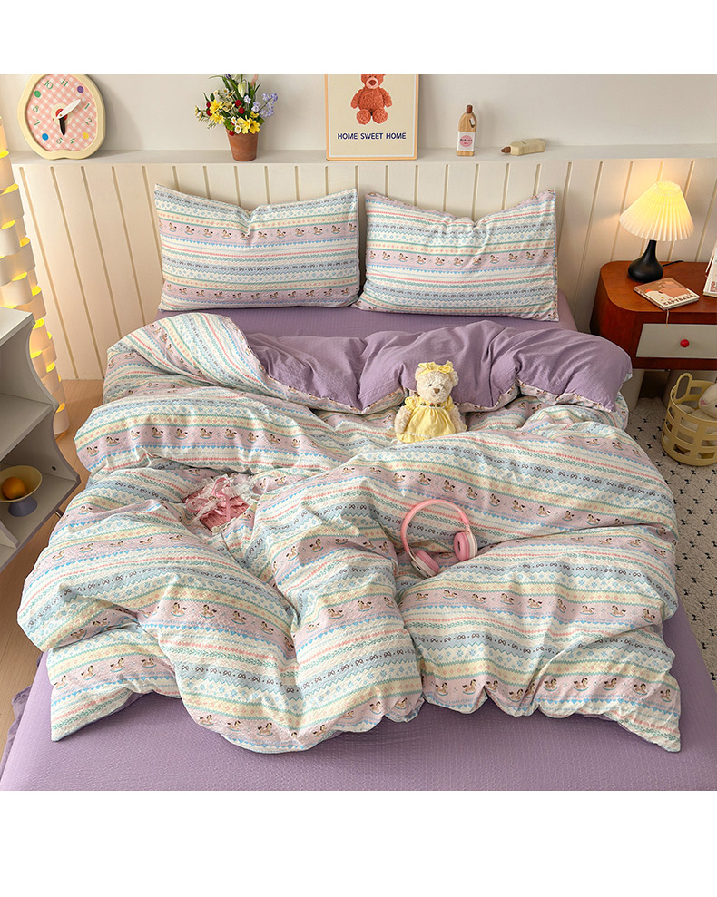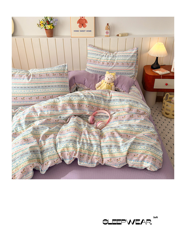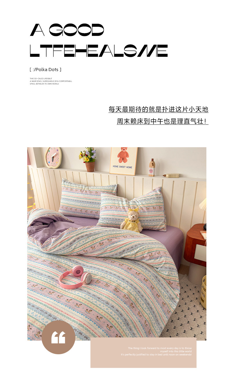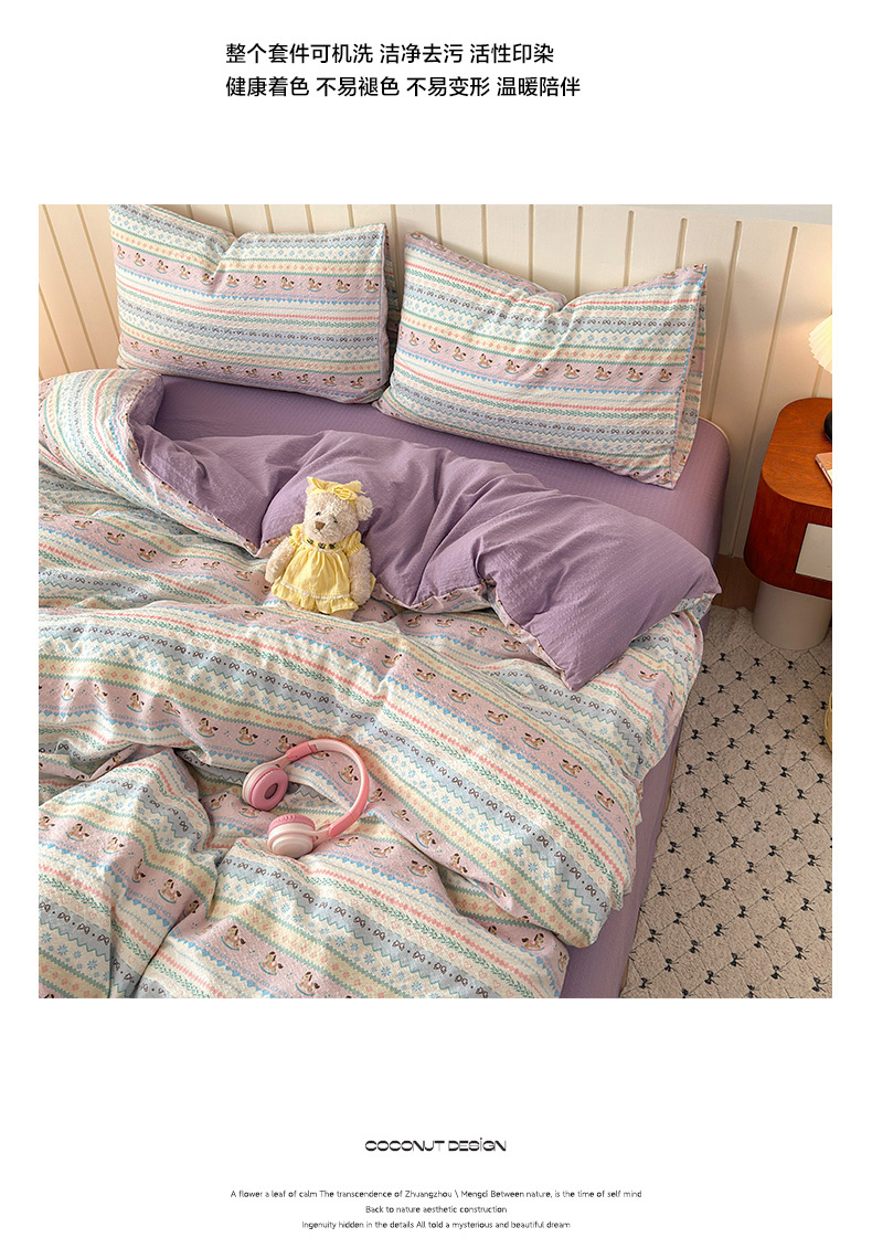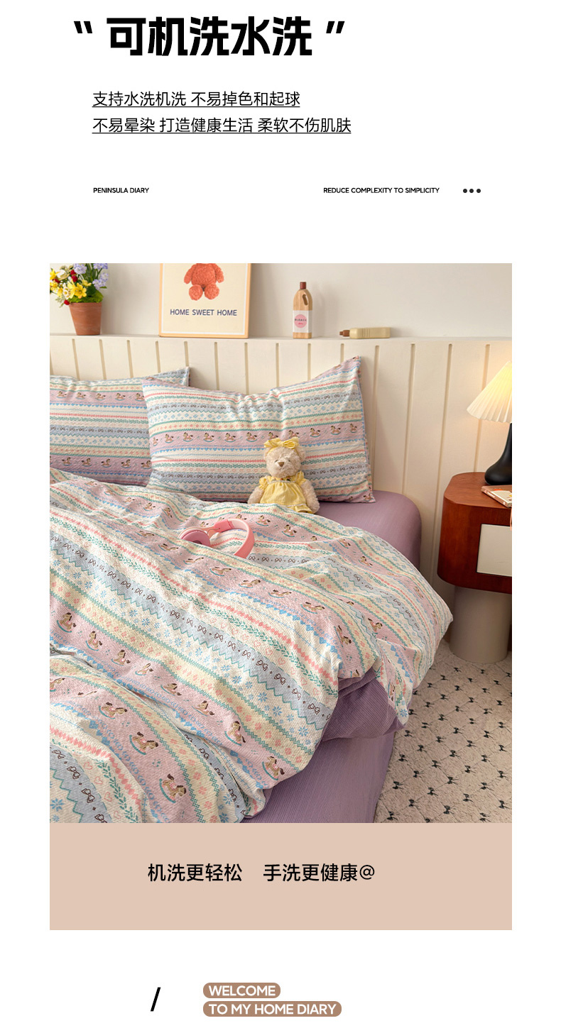 商品名称:(总)奈颜 2026新款A类泡芙纱印花四件套学生宿舍三件套-费尔岛系列