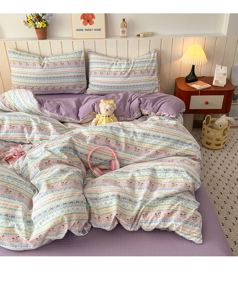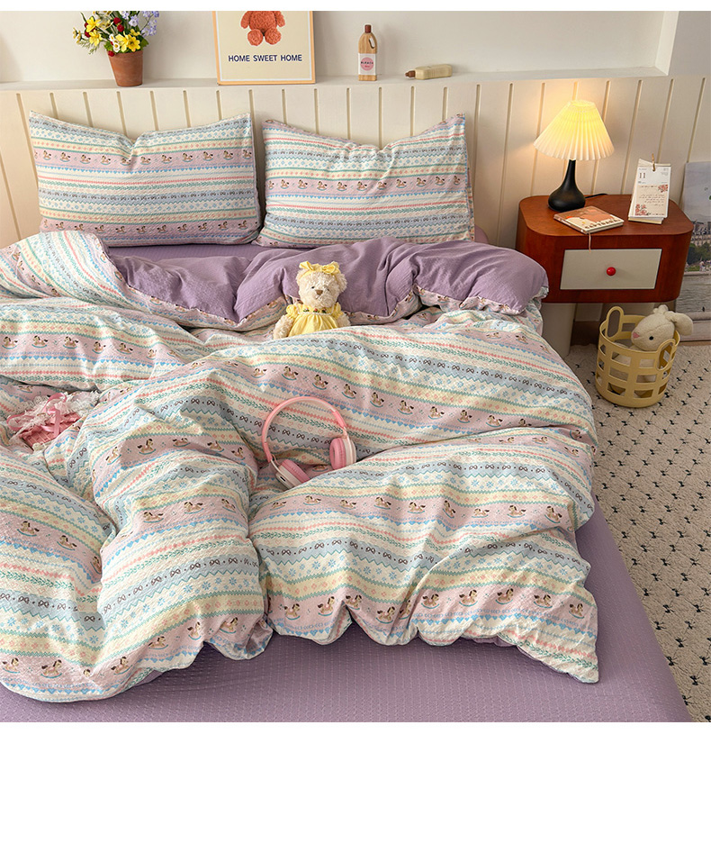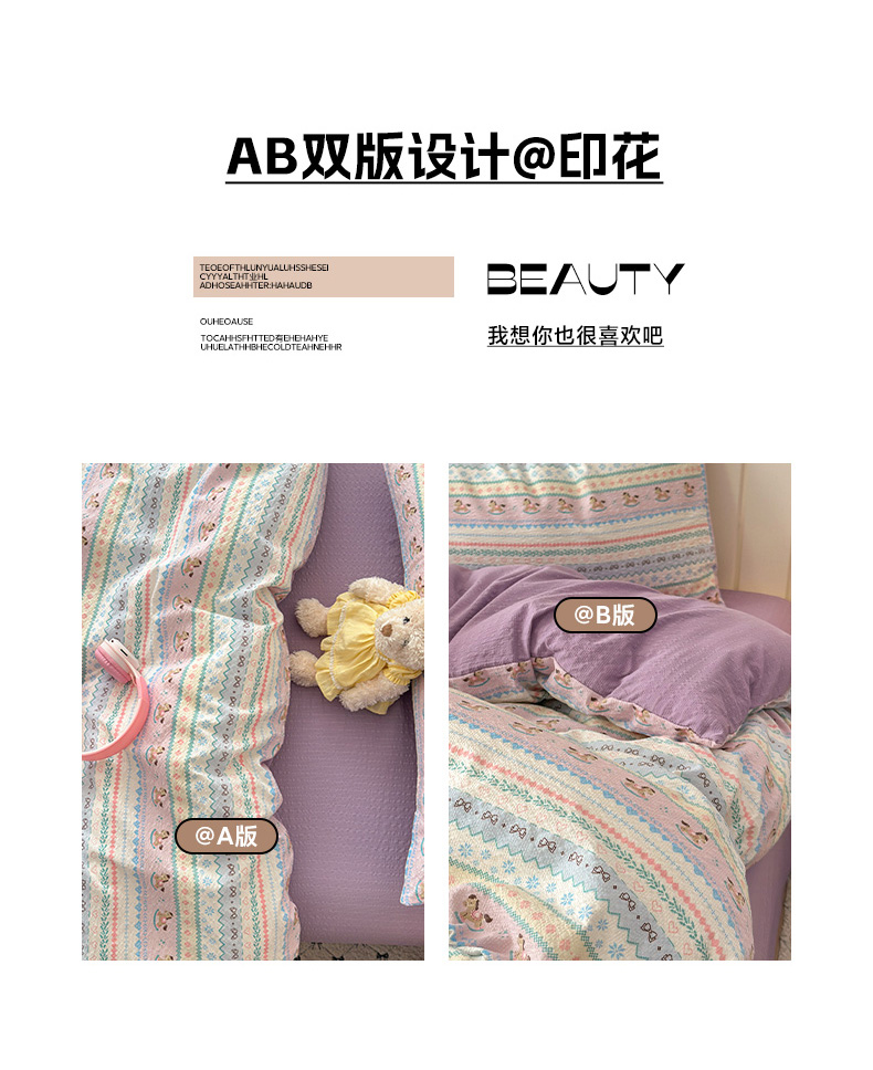 (总)奈颜 2026新款贴标款A类超柔泡芙纱印花四件套,花园小兔,猫团粉,猫团兰,猫团奶黄,猫团浅紫,木马花园,田园兔