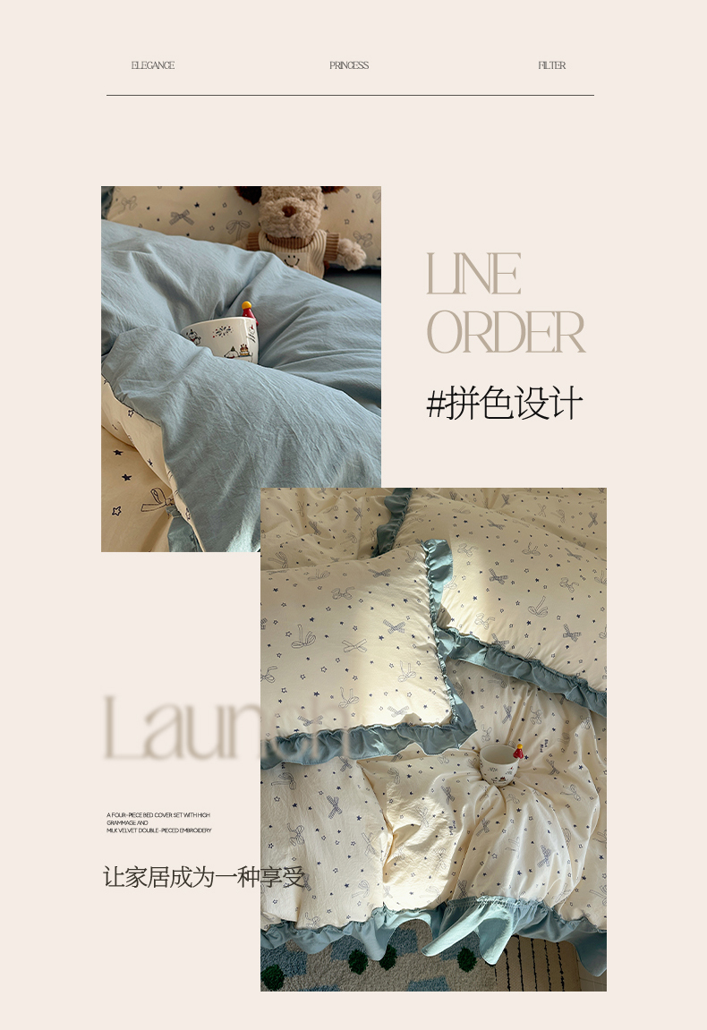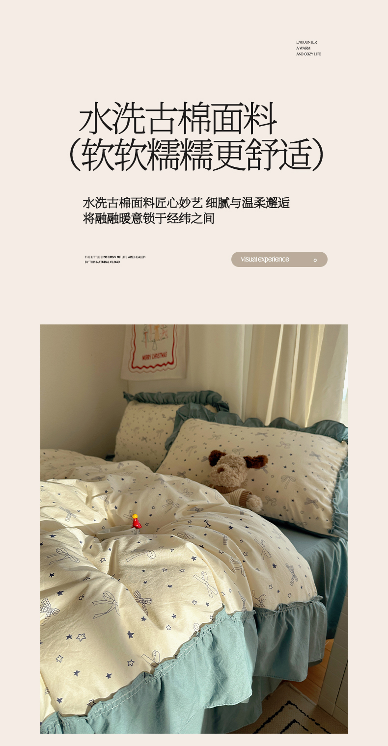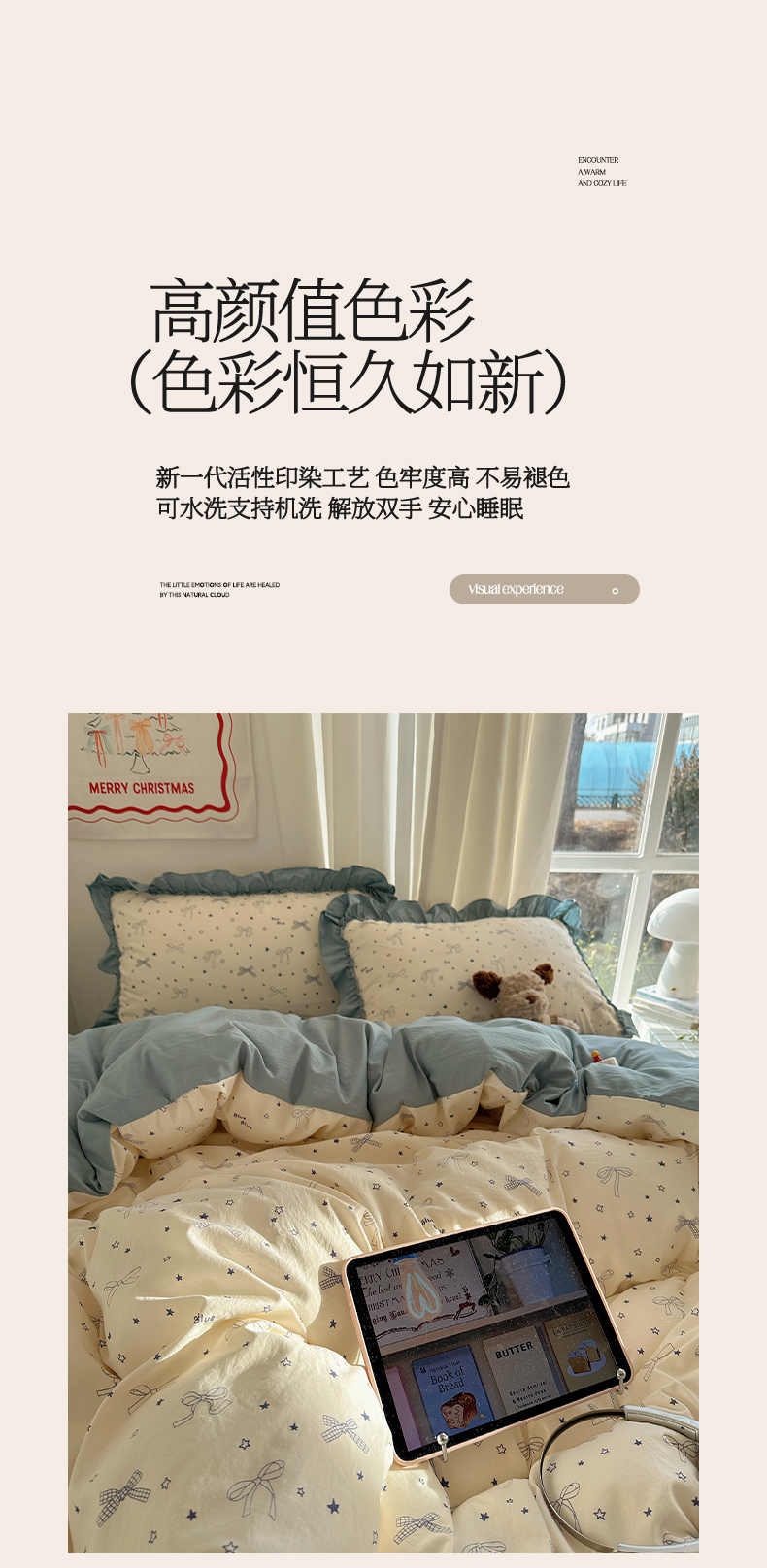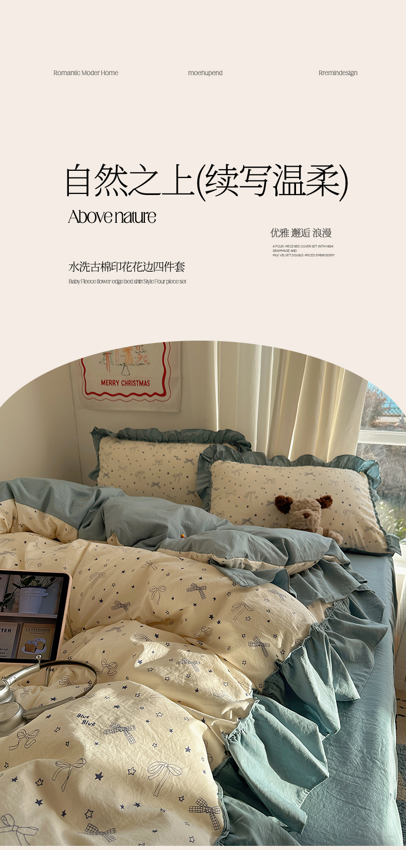 当前位置: 91家纺网 > 商品网购 > 床品套件 > 四件套 > 其它四件套 > 韩都家居 2026新款韩系大花边系列古棉四件套 雨沫
