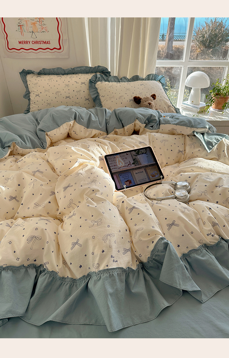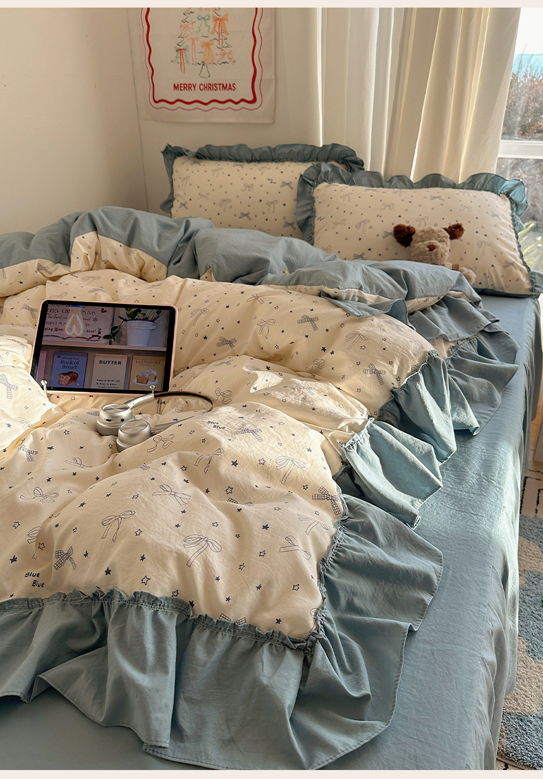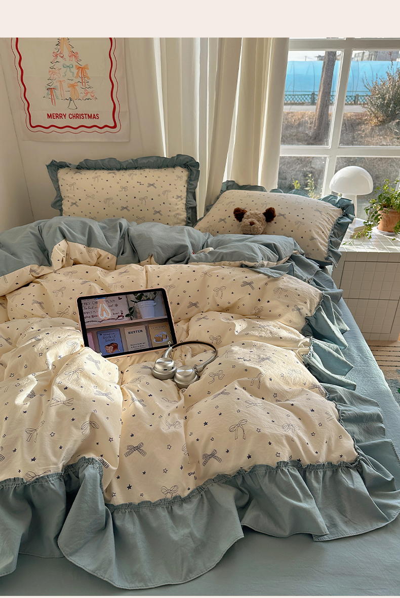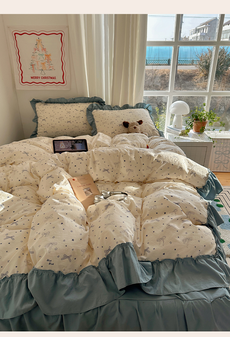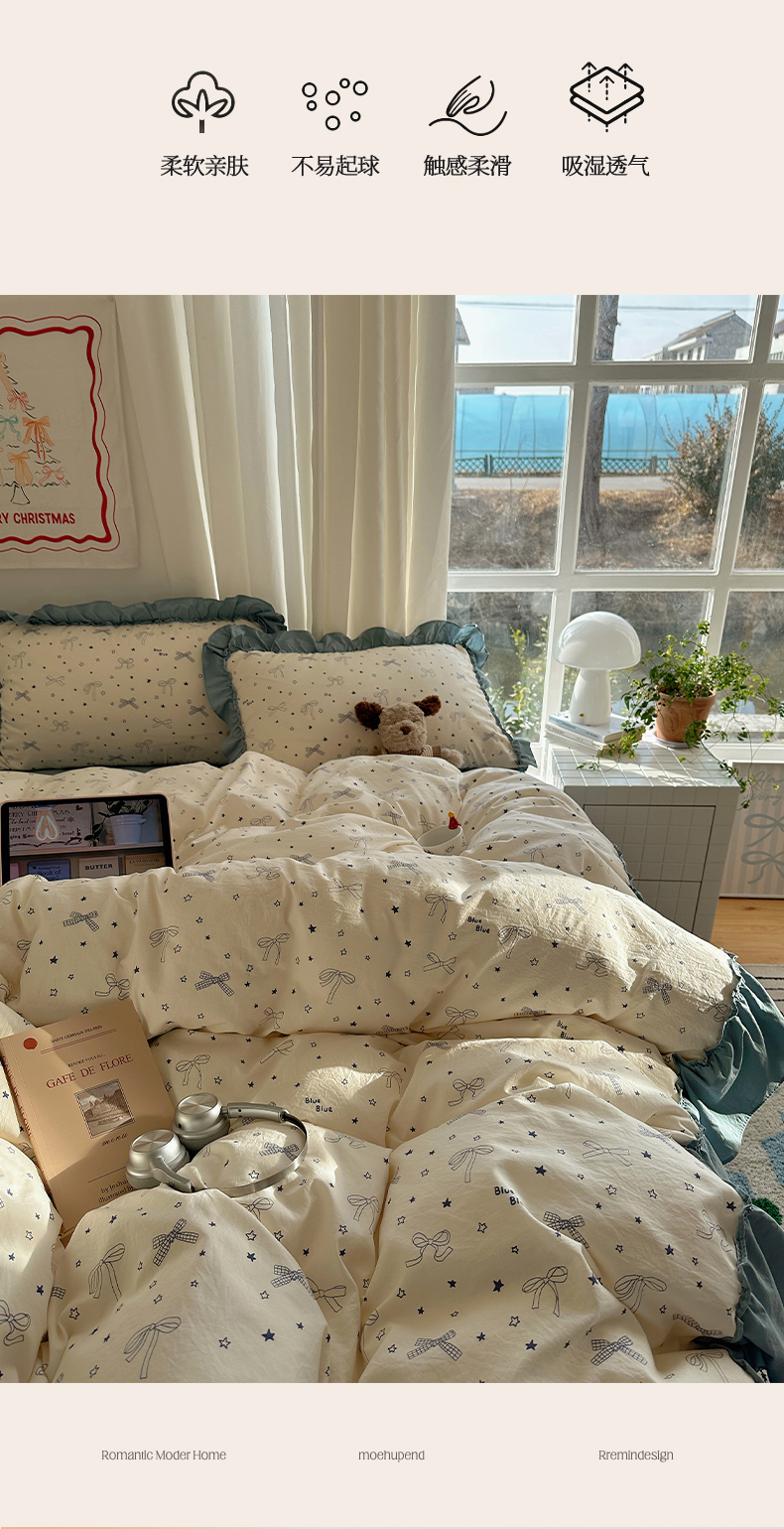 当前位置: 91家纺网 > 商品网购 > 床品套件 > 四件套 > 其它四件套 > 韩都家居 2026新款韩系大花边系列古棉四件套 雨沫