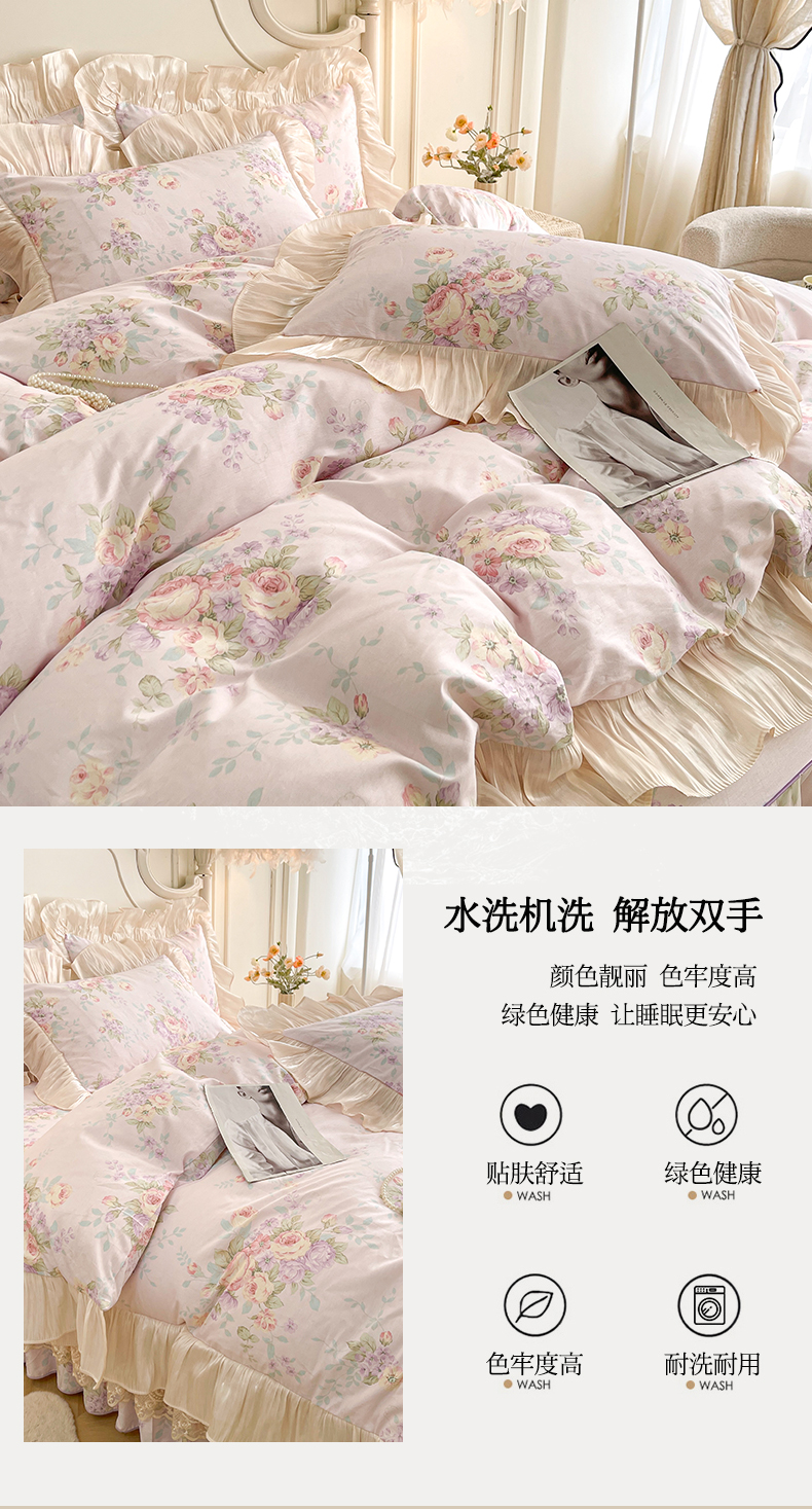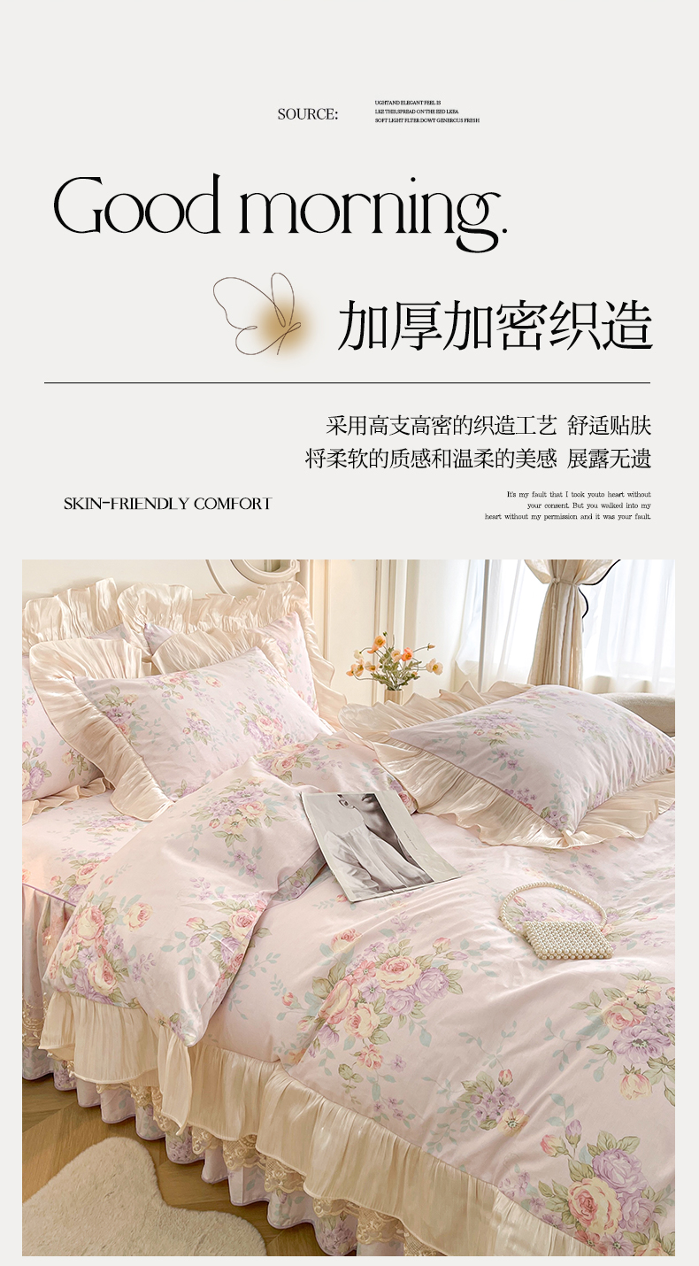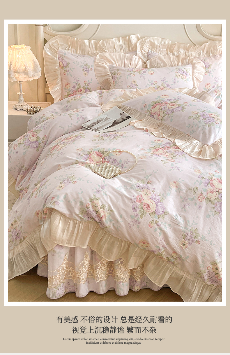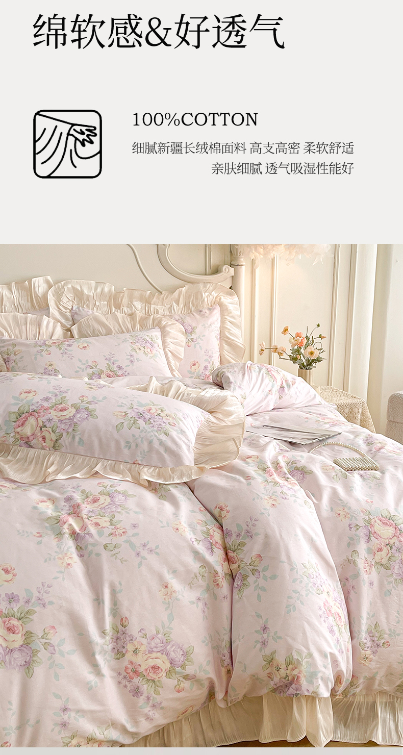 当前位置: 91家纺网 > 商品网购 > 床品套件 > 四件套 > 全棉普通四件套 > 宜凡家纺 2026新款全棉印花床裙款四件套 春日微光