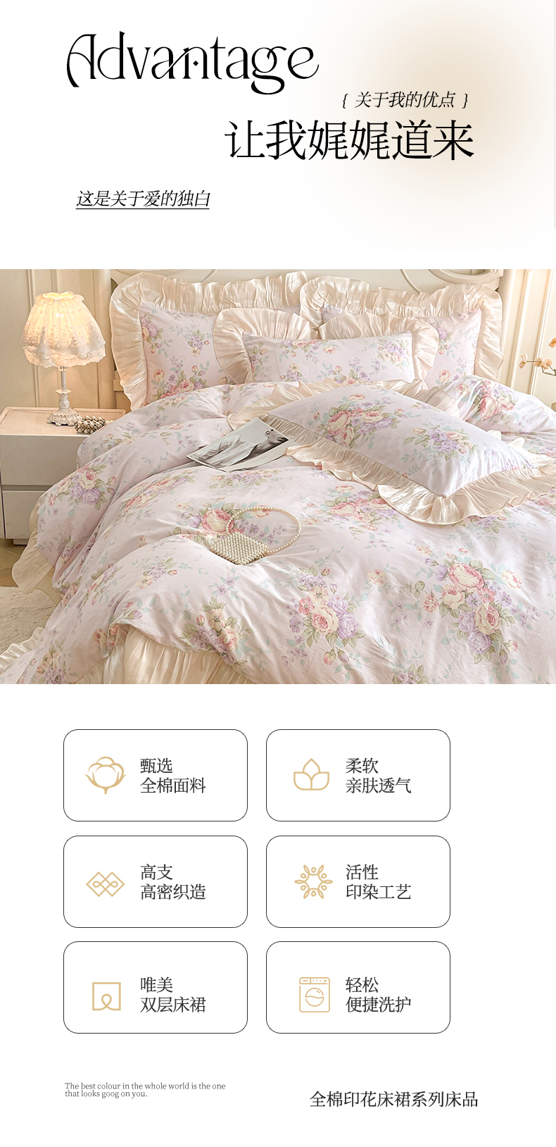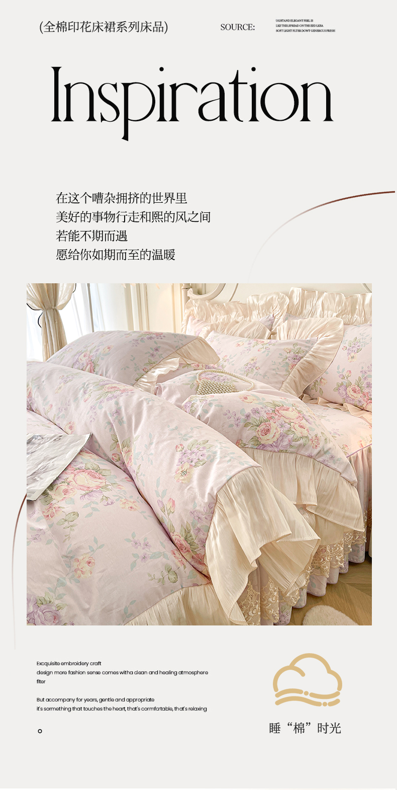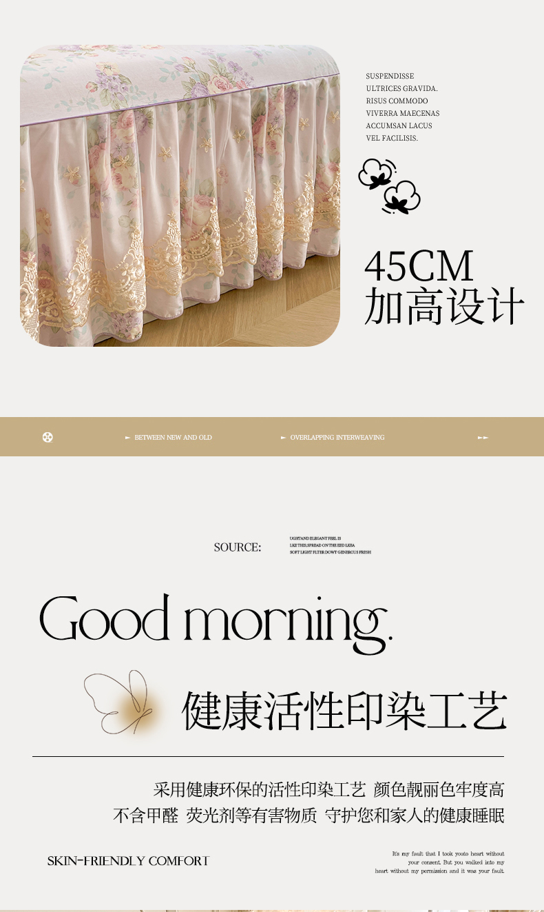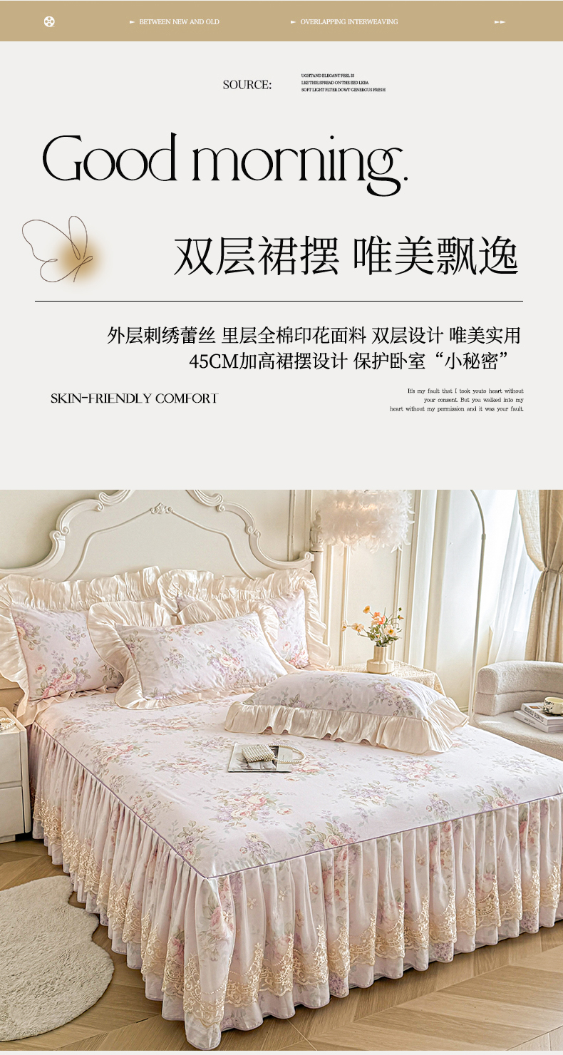 当前位置: 91家纺网 > 商品网购 > 床品套件 > 四件套 > 全棉普通四件套 > 宜凡家纺 2026新款全棉印花床裙款四件套 春日微光