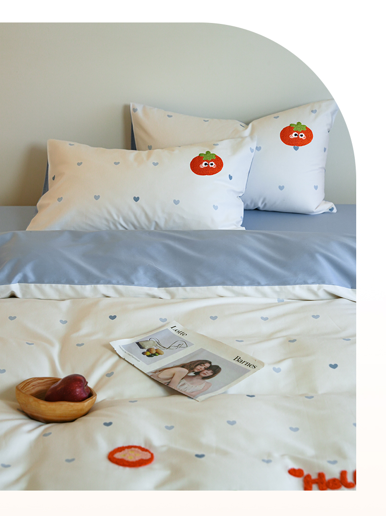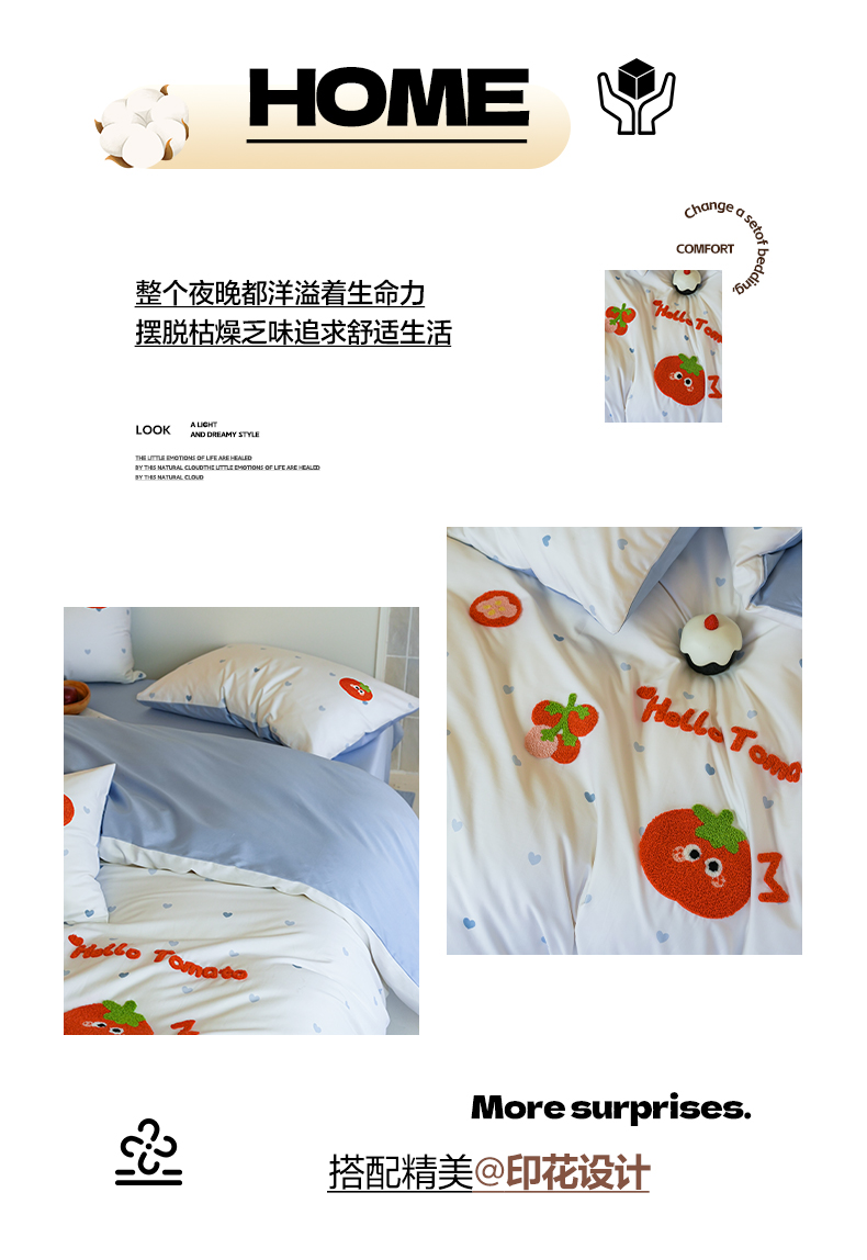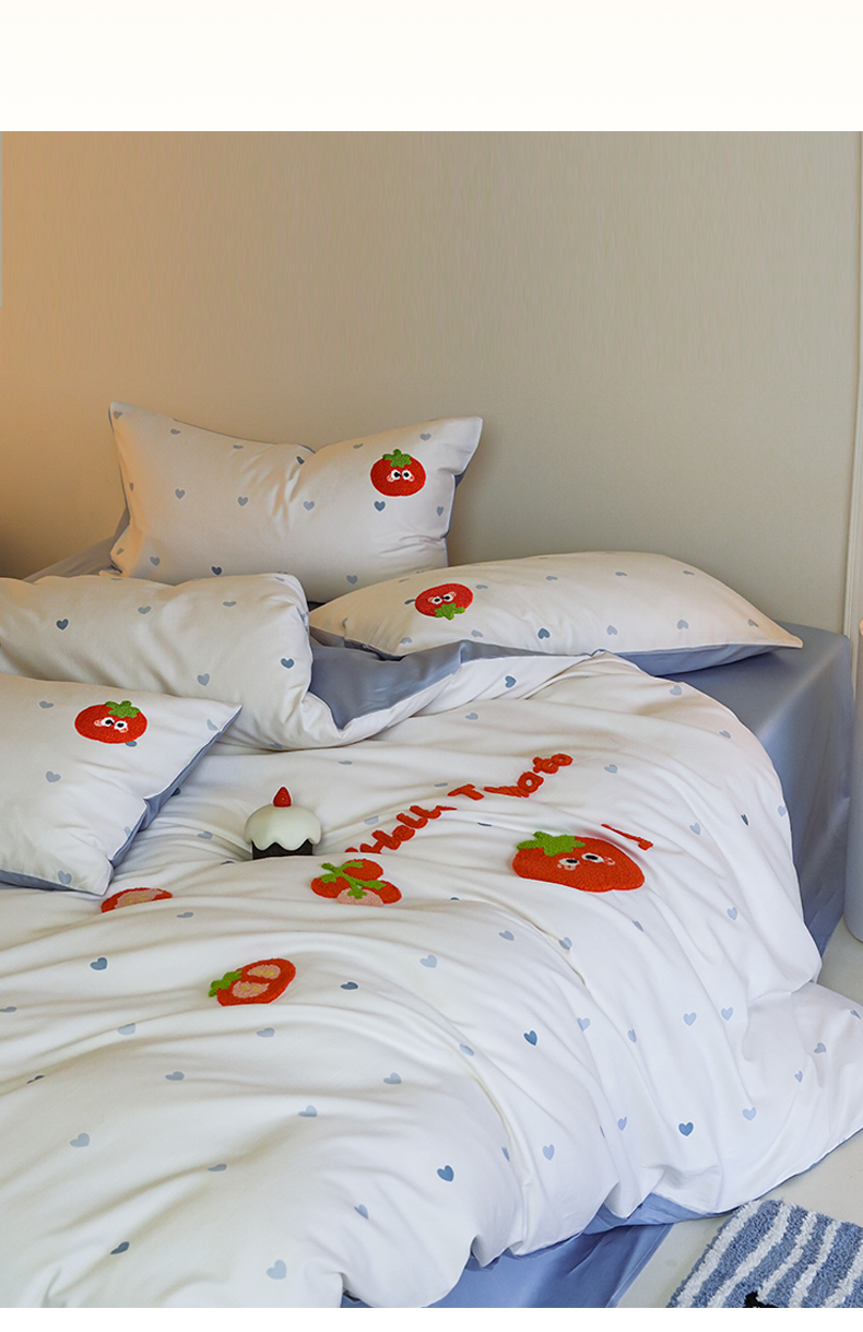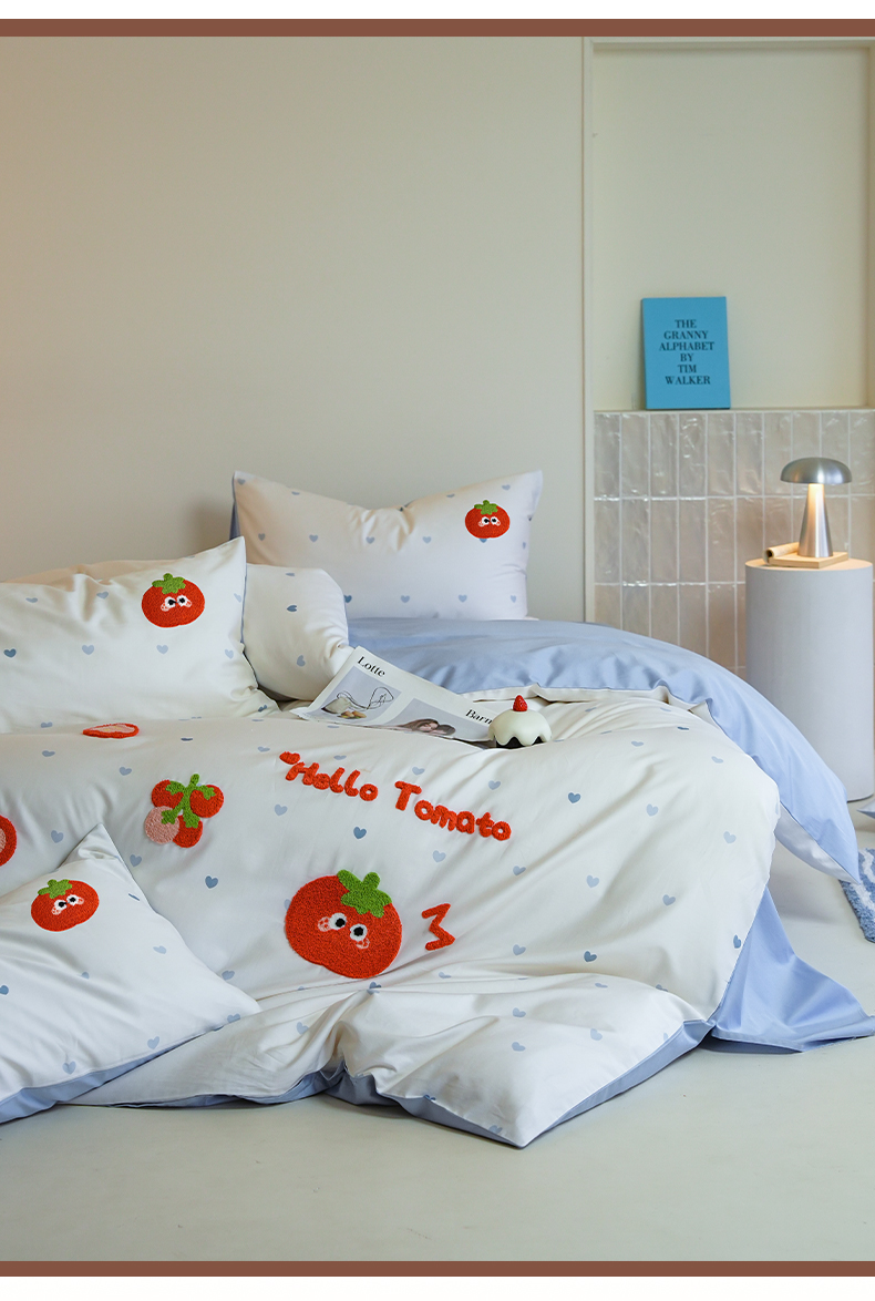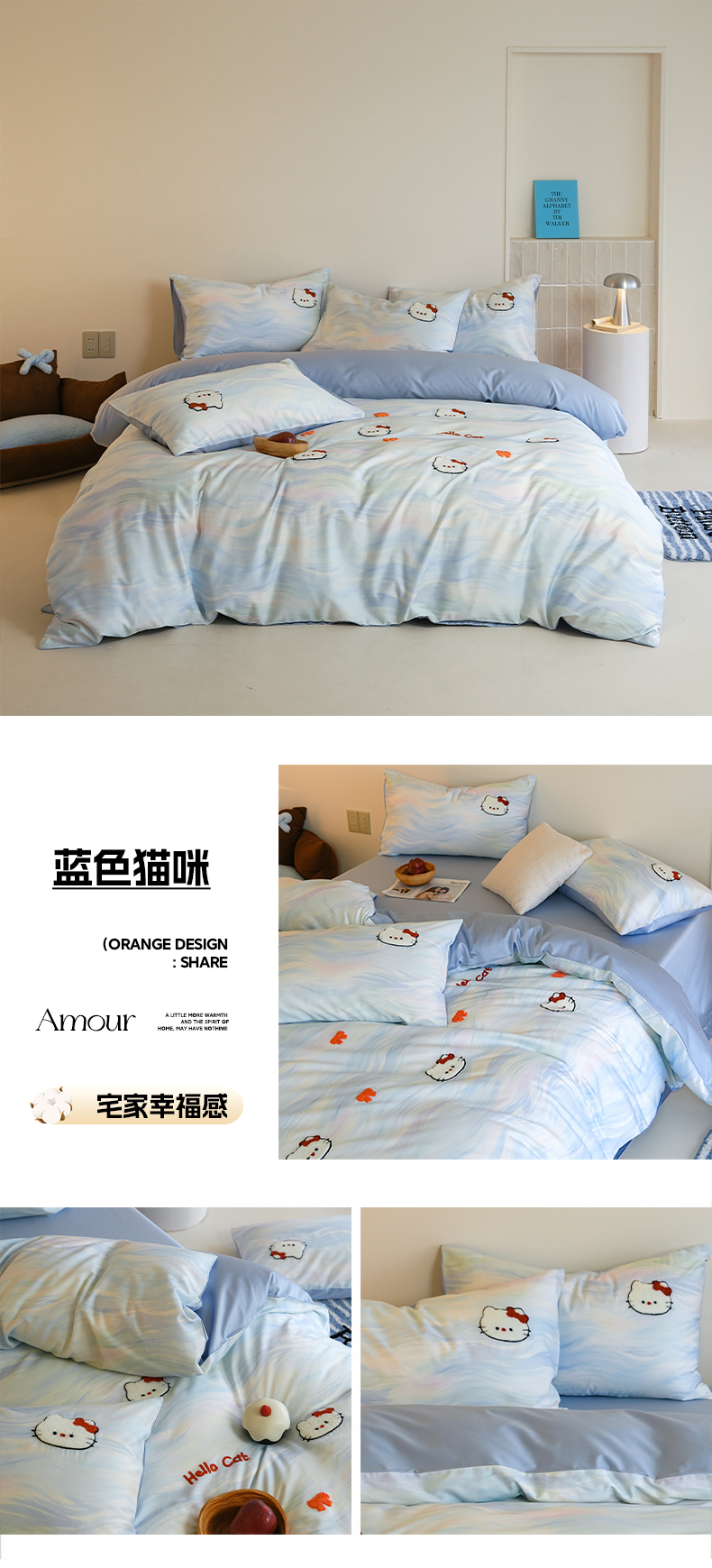 (总)雅居纺家纺 2026新款50长绒棉满版绣花四件套,爱心柿柿如意,爱心西红柿,蓝色猫咪,满天星