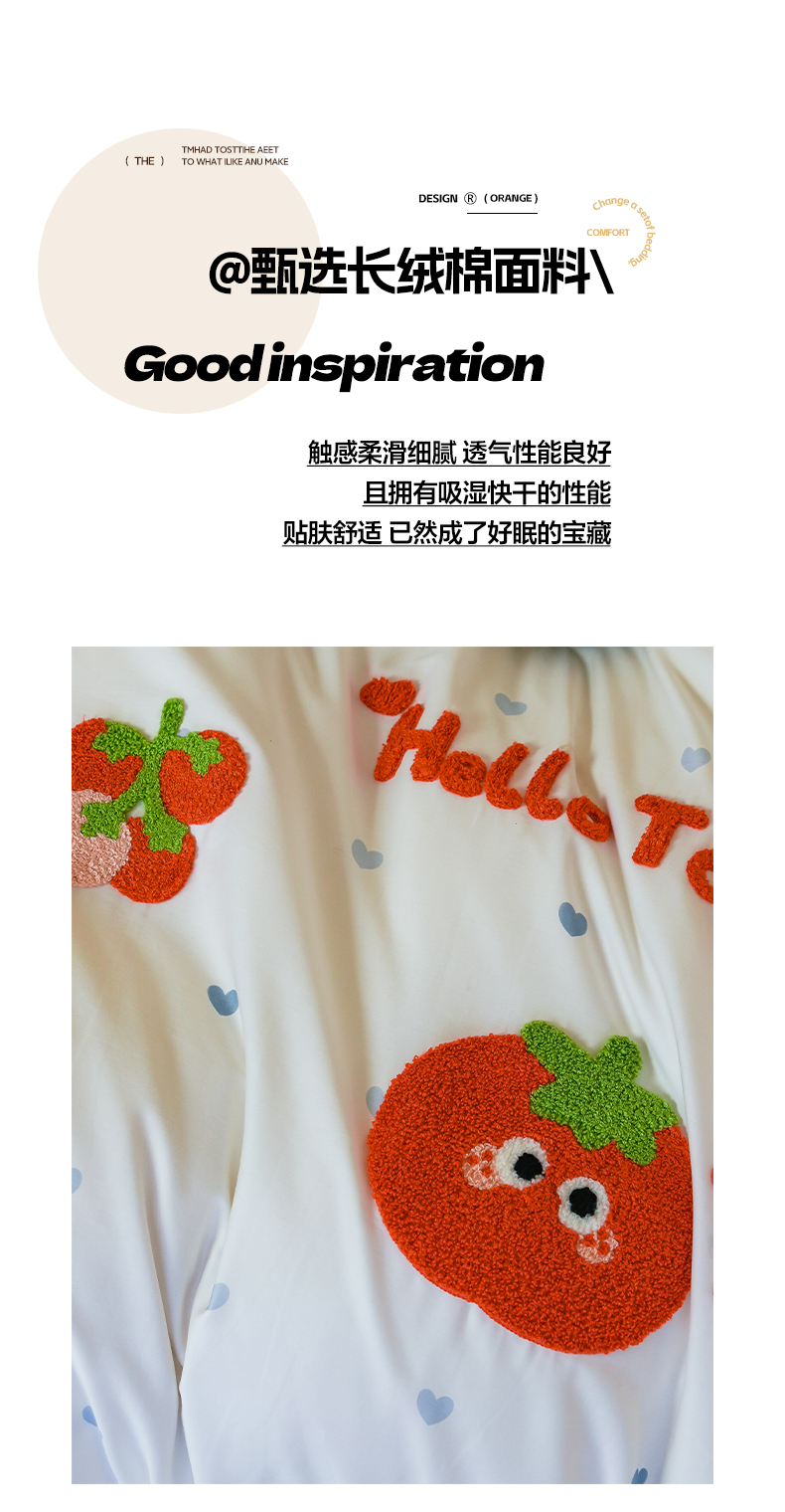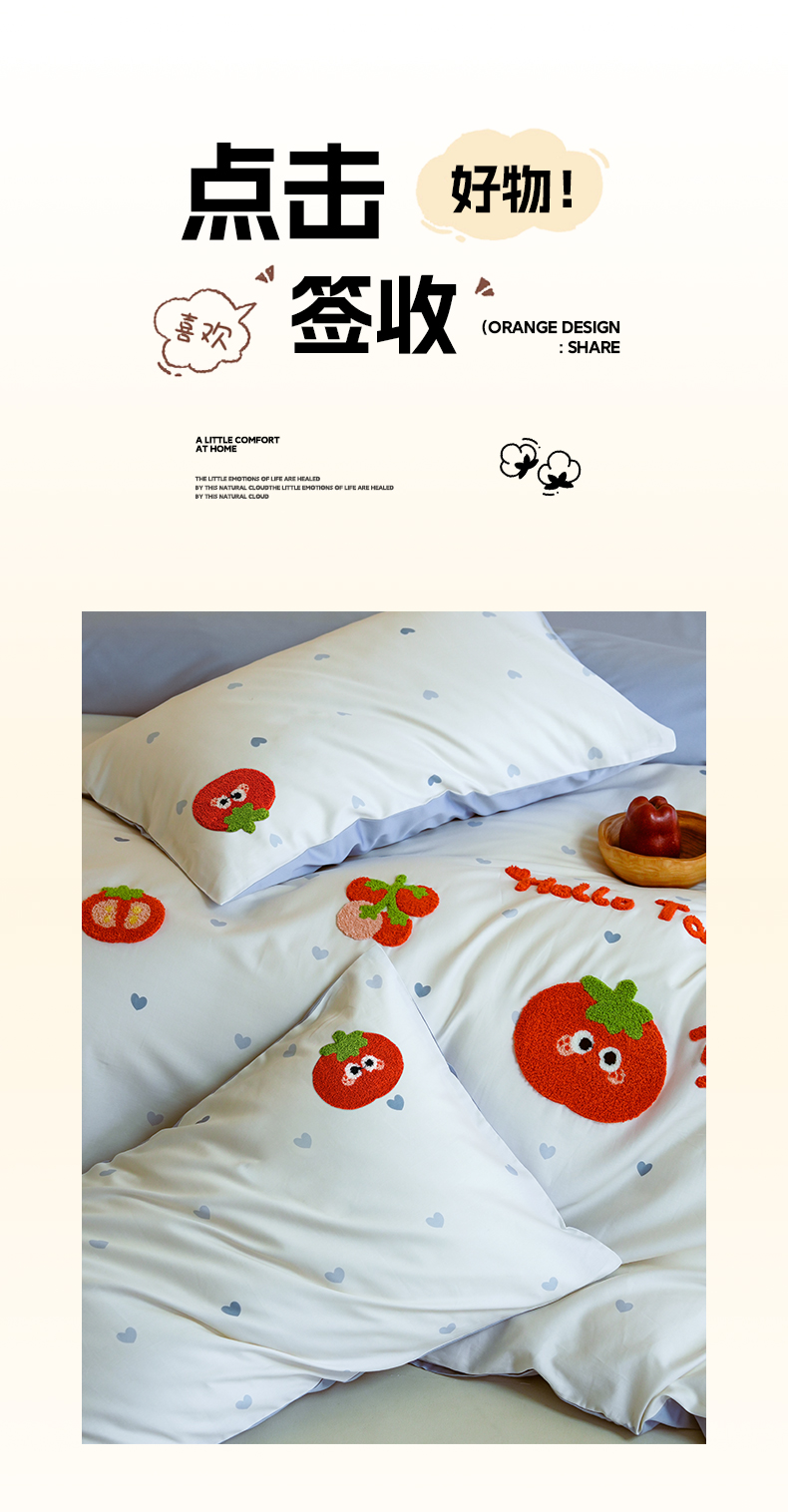 商品名称:雅居纺家纺 2026新款50长绒棉满版绣花四件套 爱心西红柿