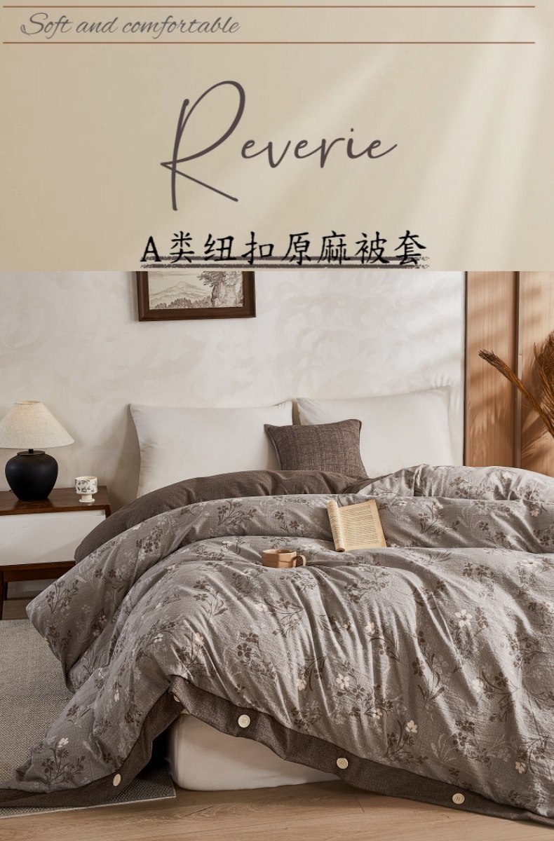 (总)圣比熊 2026新款A类原麻纽扣加厚被套床单宿舍双人床仿亚麻被子,瑞卡斯,古堡花园-咖,山花浪漫,花盏如约,安紫,花与蝶,春风序,花涧-灰,金锦,锦花,洛克-咖,沐枫,叶影,忆秋风,幽梦