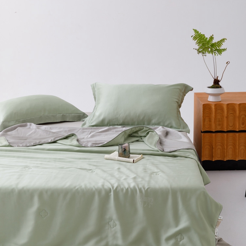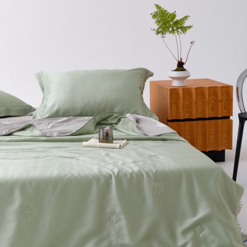 (总)CINNY馨宜 2026新款60莱赛尔大豆纤维撞色天丝夏被-伯爵,晨曦紫,孔雀绿,浅松绿,雾霾蓝,组合图