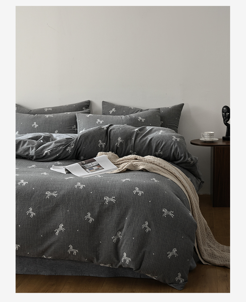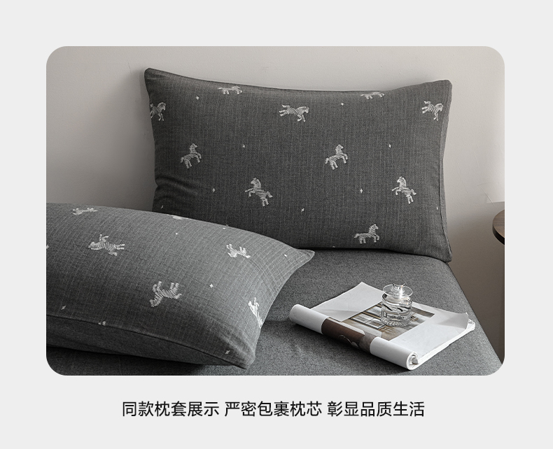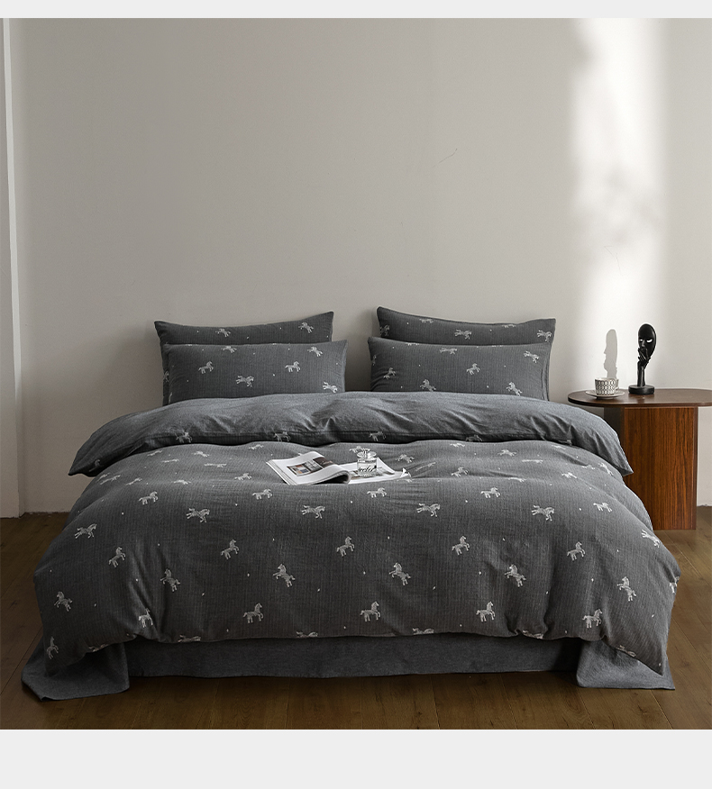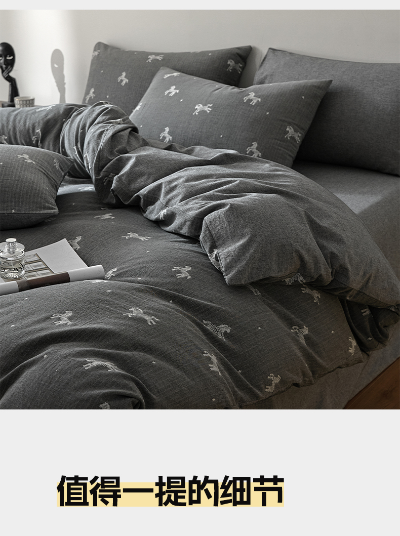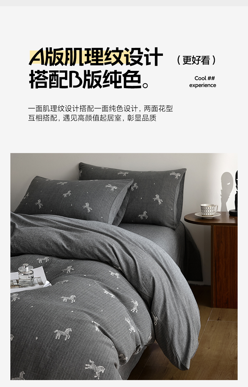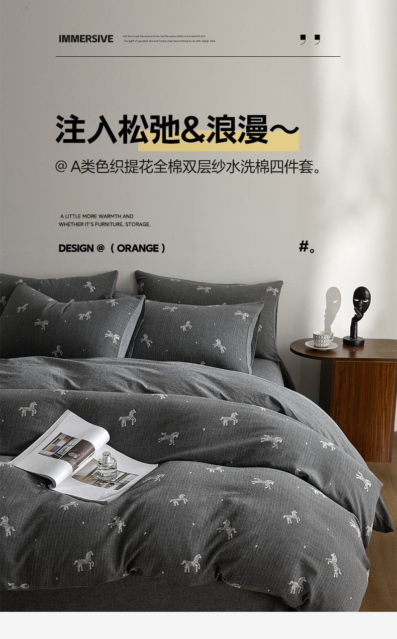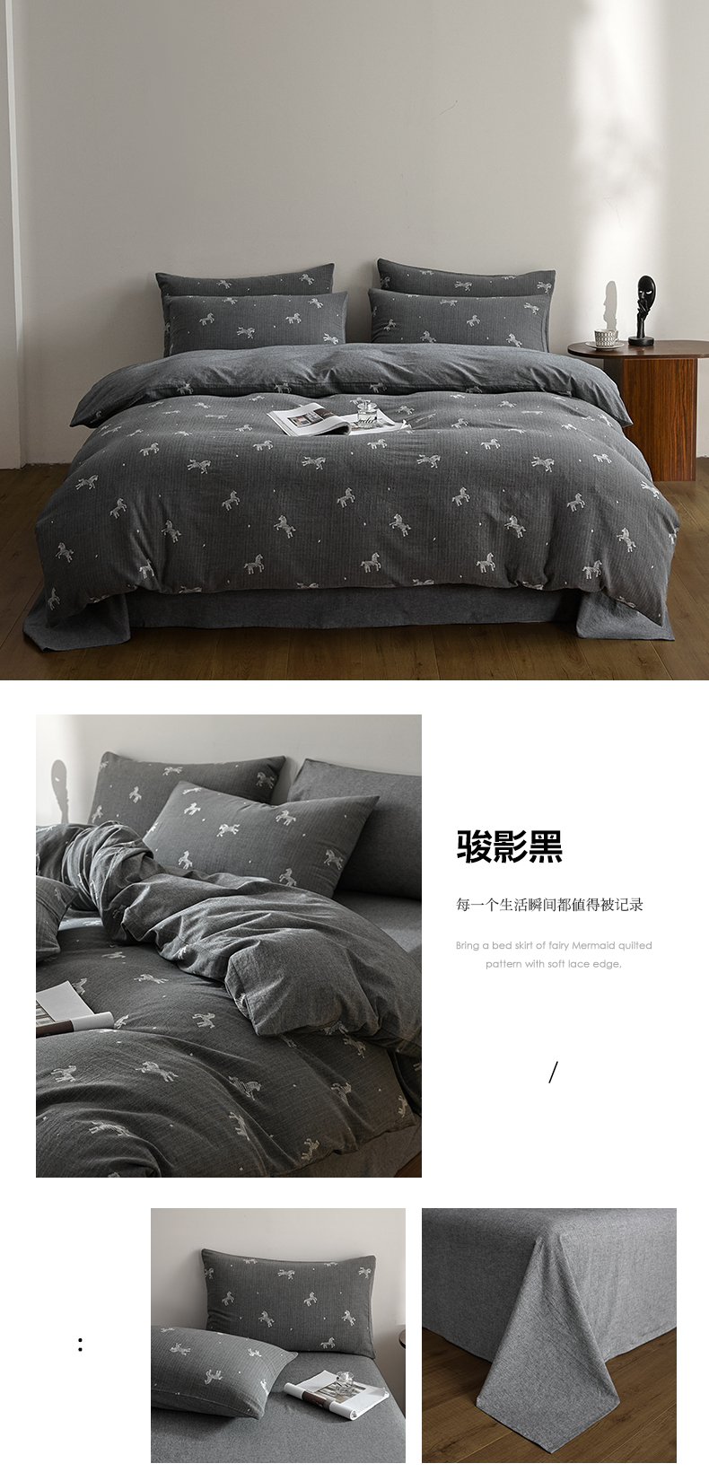 商品名称:如一 2026新款A类色织提花全棉双层纱水洗棉四件套 骏影黑