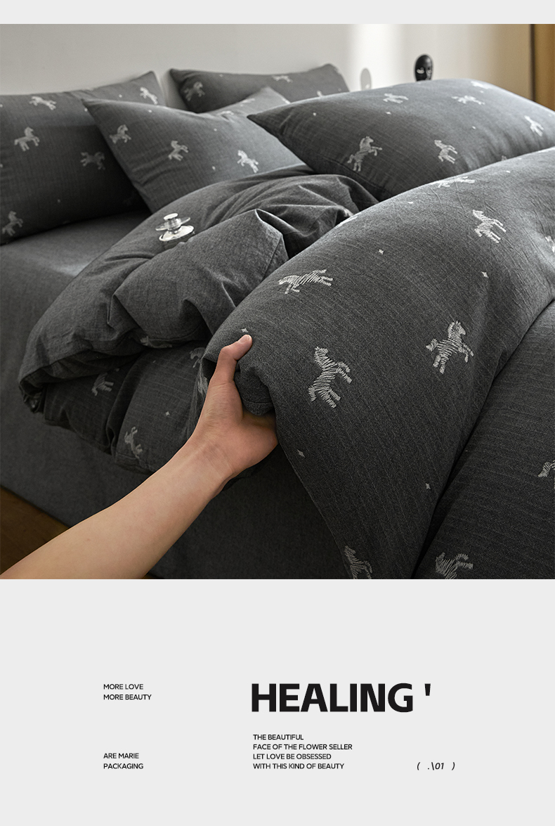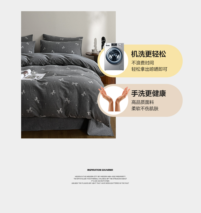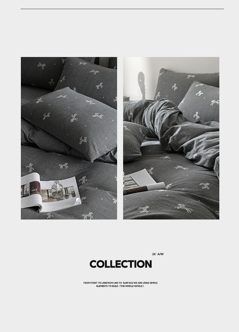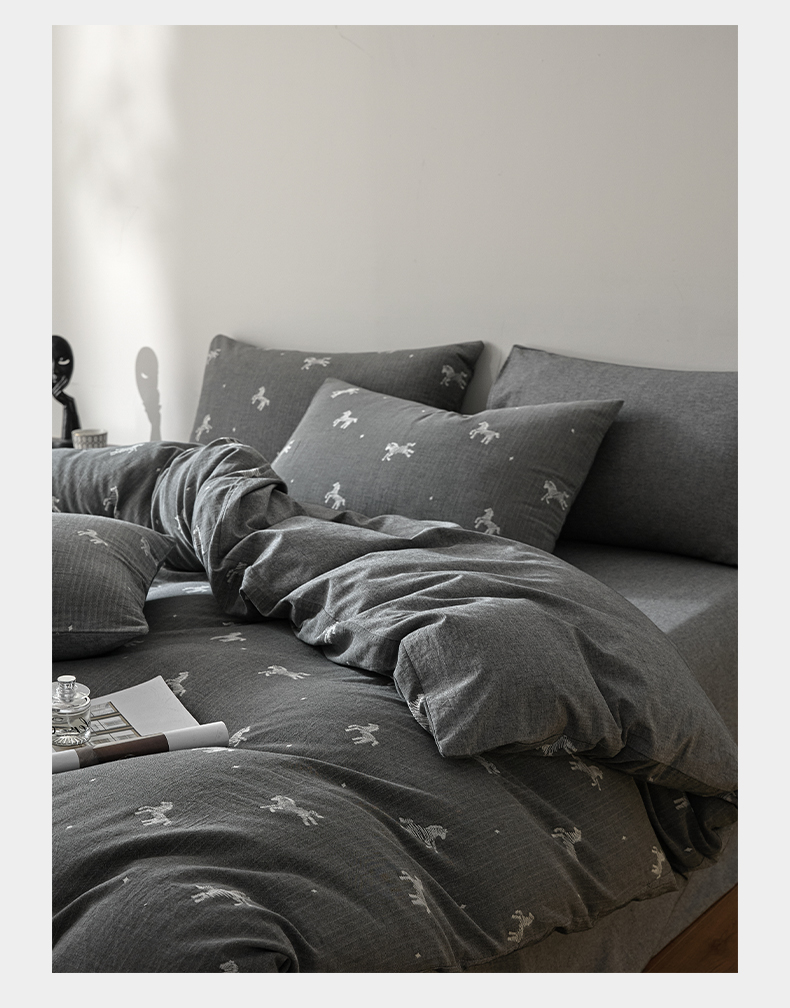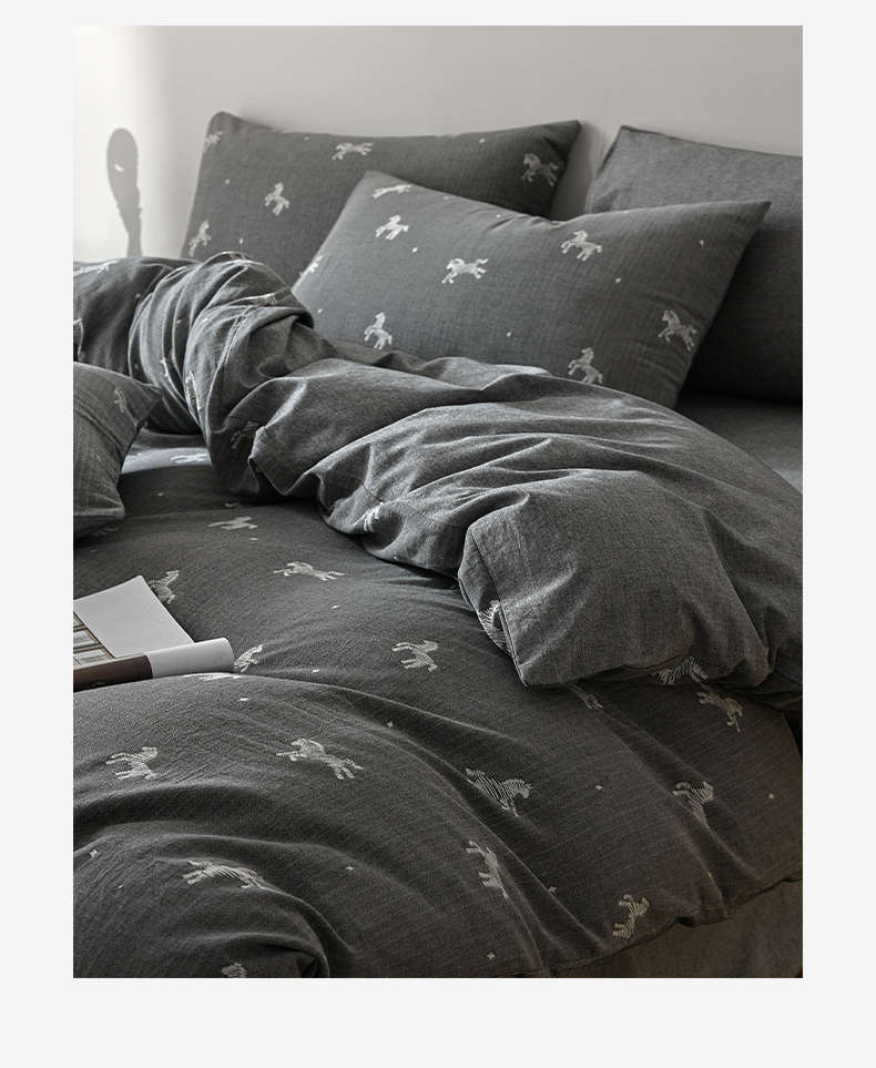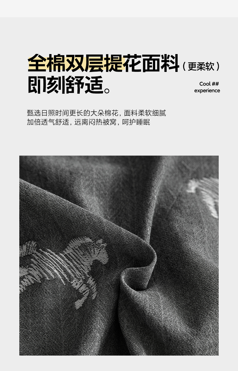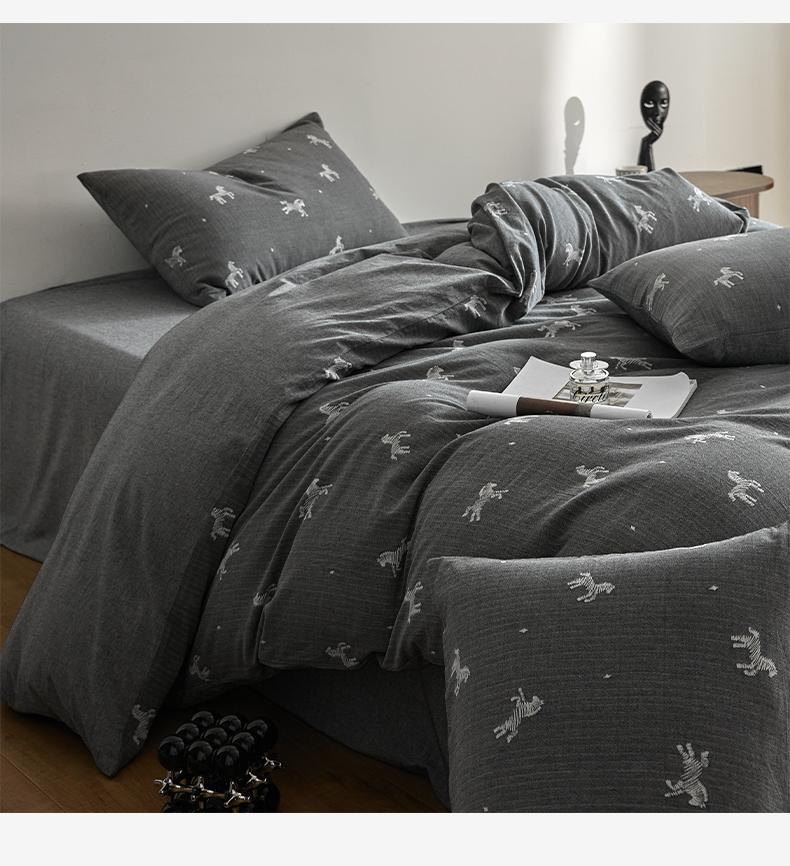商品名称:如一 2026新款A类色织提花全棉双层纱水洗棉四件套 骏影黑