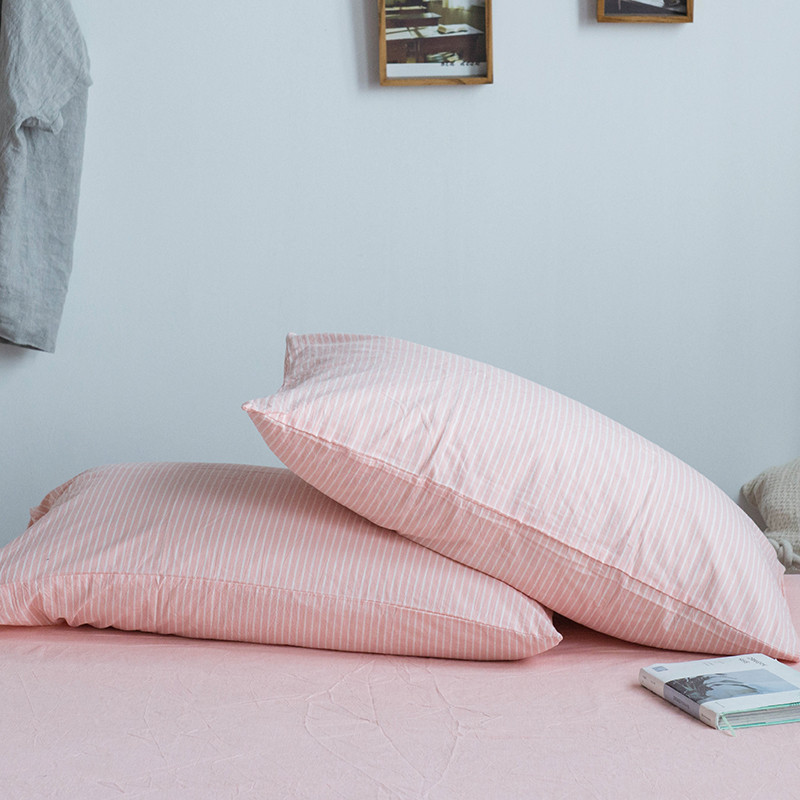 尚品本色 2022新款水洗棉套件系列-单枕套 粉细条/对
