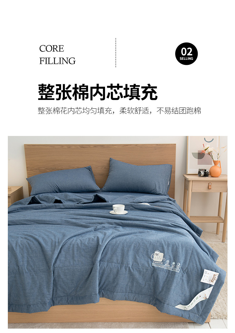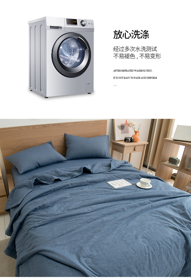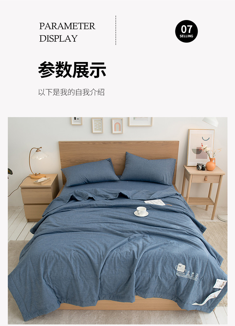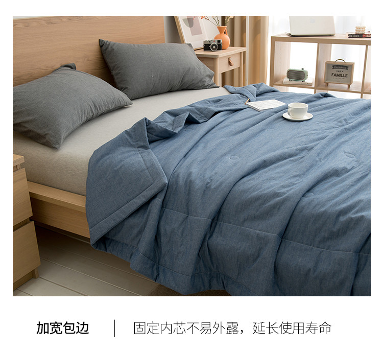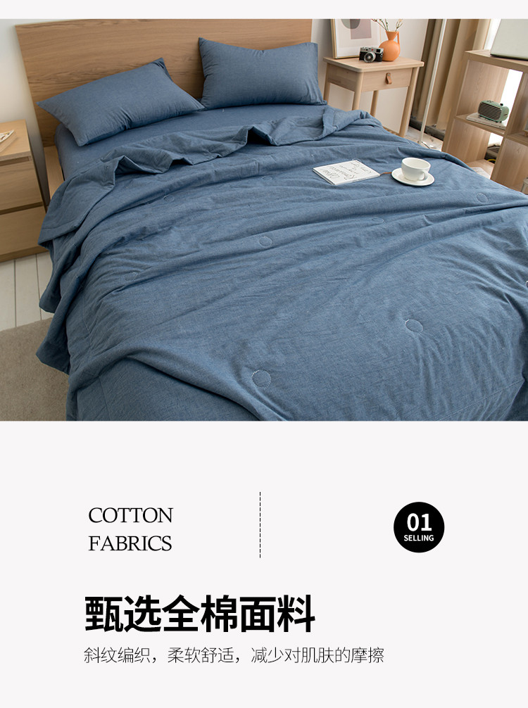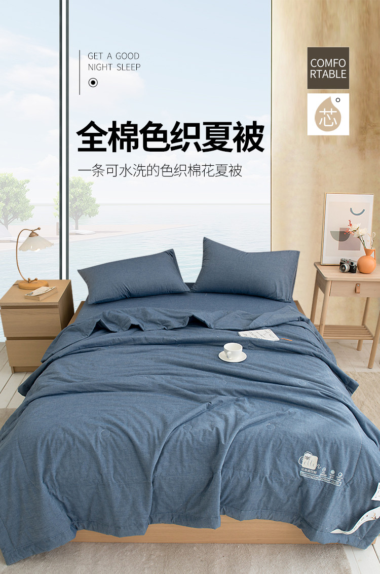 商品名称:全季 2021新款无印款全棉纯色色织棉花夏被 蓝色