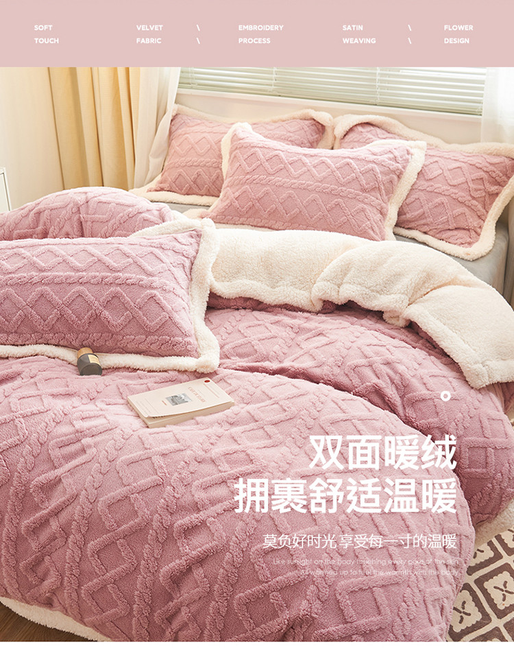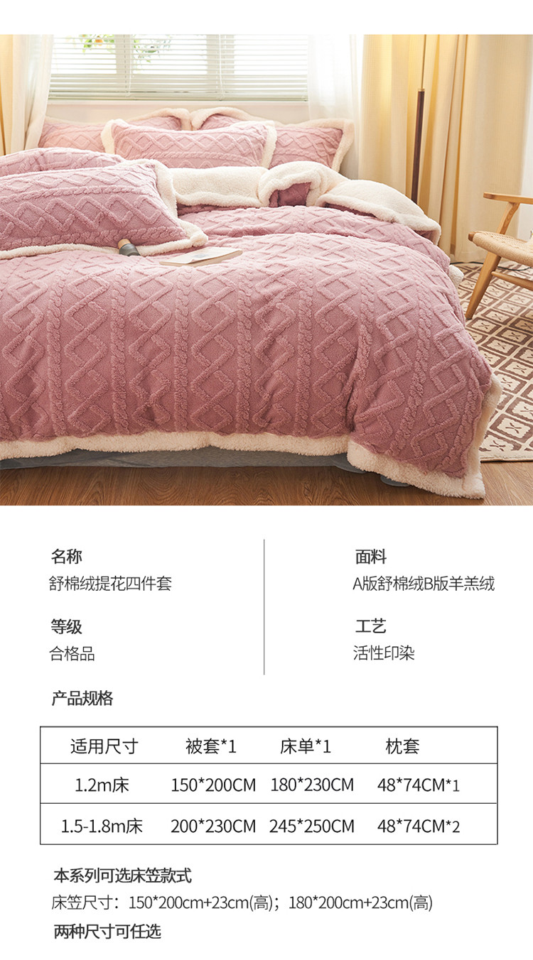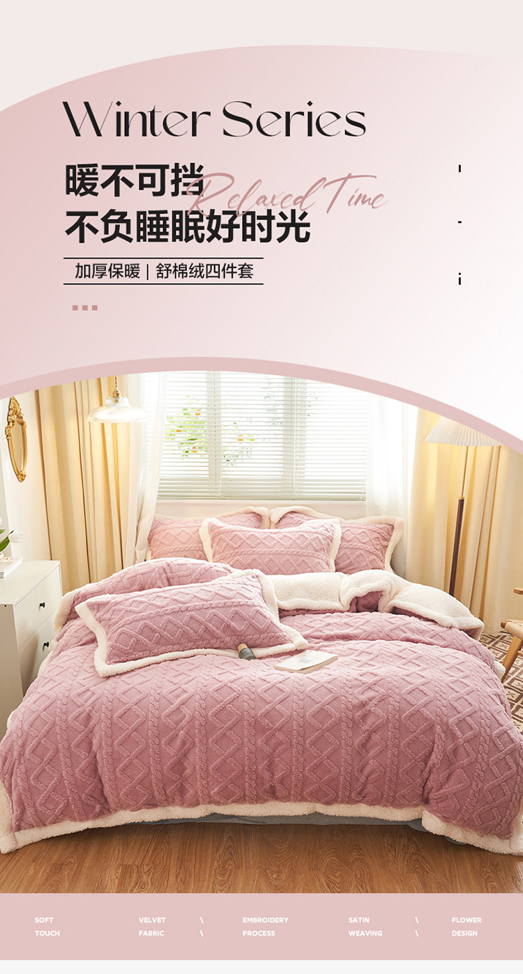 当前位置: 91家纺网 > 商品网购 > 床品套件 > 四件套 > 提花四件套 > 吾秀家居2022新款舒棉绒提花四件套 毛衣粉