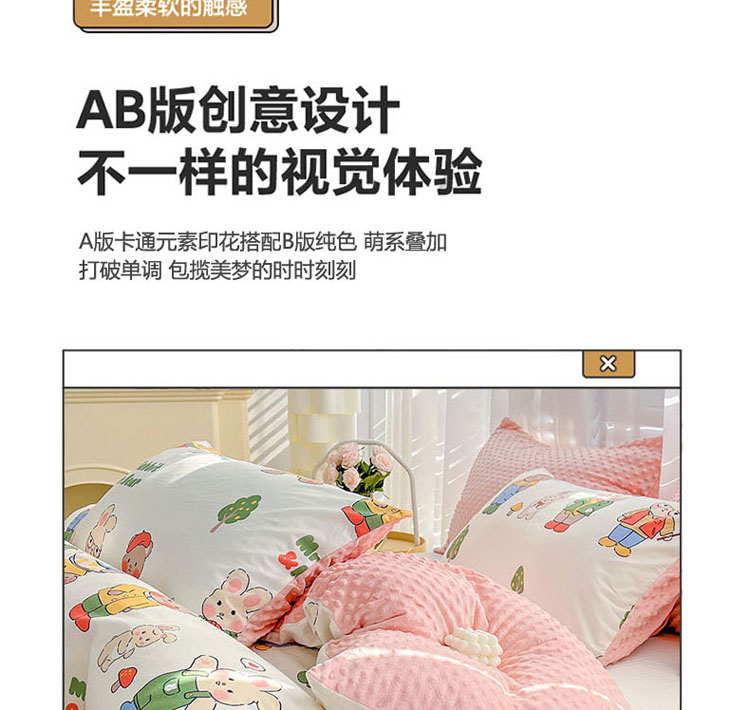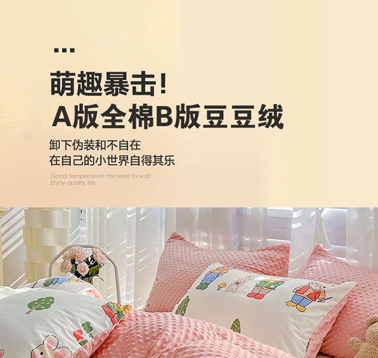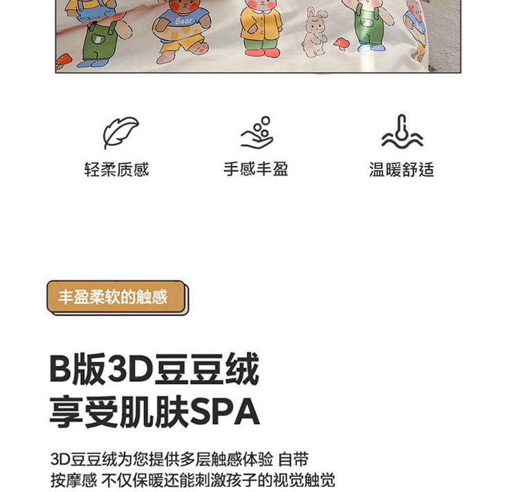 梦家居 2023新款全棉加安抚豆豆绒被套两件套三件套 熊兔乐园