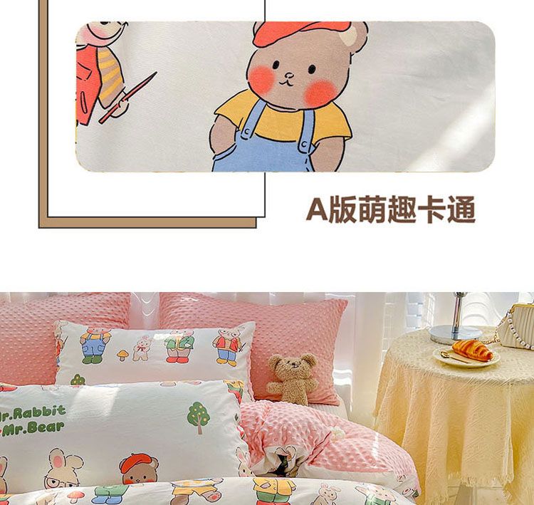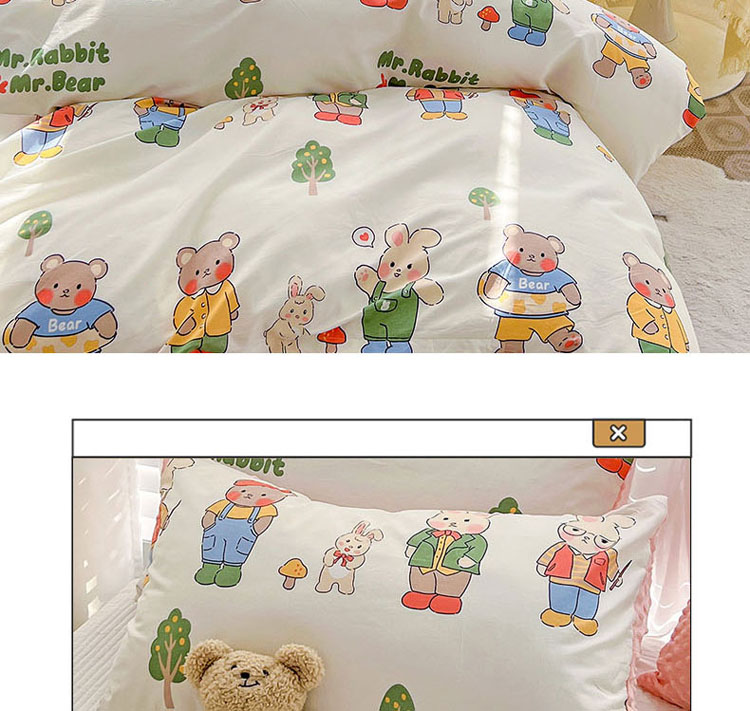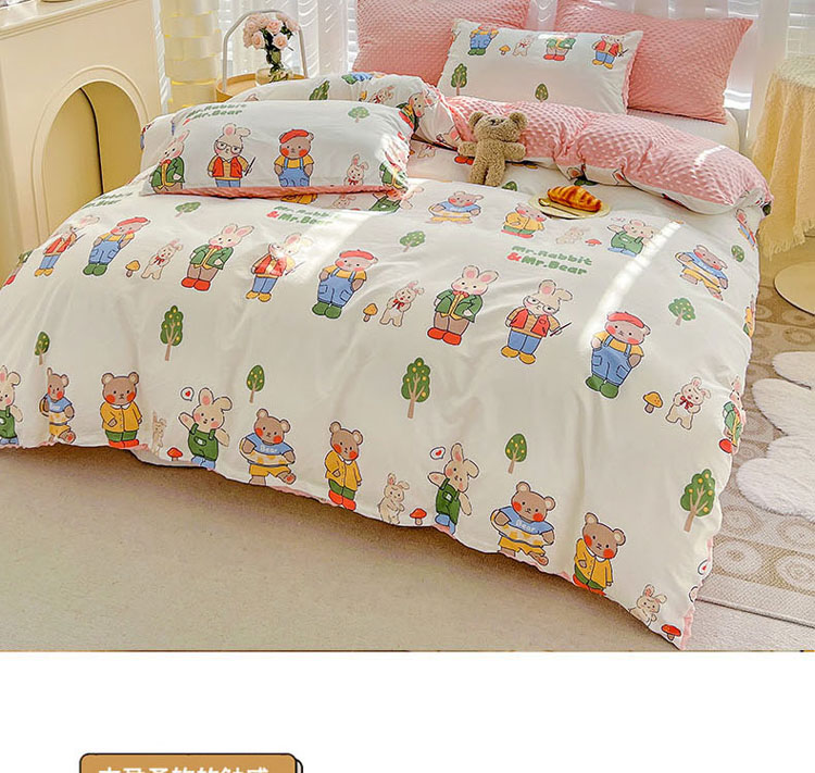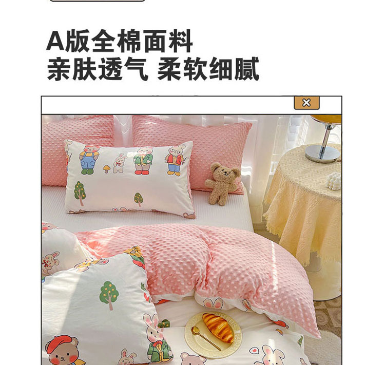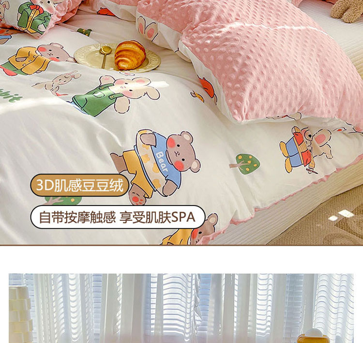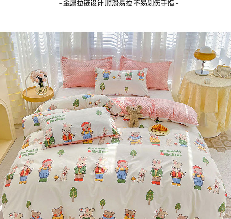 商品名称:梦家居 2023新款全棉加安抚豆豆绒被套两件套三件套 熊兔乐园