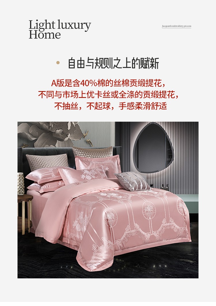 (总)柔觉家纺 天丝刺绣贡缎提花全棉四件套,艾利斯-兰金,宝琪-藕荷玉,罗娜恋歌-粉,奥威丽雅-蓝,奥薇丽雅(豆沙),龙凤交鸣(大红),罗娜恋歌-红玉,情恋花语(大红),罗兰庄园-靛蓝,莫奈情怀-蓝金,叶语浪漫-浅紫,约瑟情调-灰金,约瑟情调-魅紫,雅普诺-卡兰,小憩-雪青,科西利亚-金色,雅普诺-红灰,水汐-绸缎兰