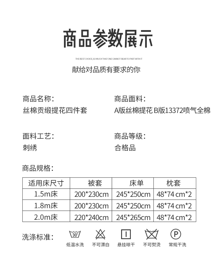 商品名称:天丝刺绣贡缎提花全棉四件套