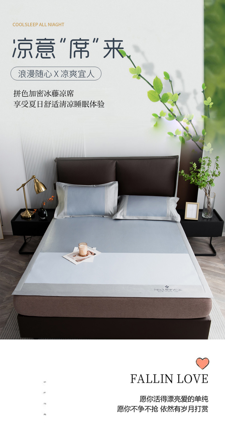当前位置: 91家纺网 > 商品网购 > 床上用品 > 凉席 > 藤席 > 印季 2023新款 拼色加密冰藤凉席 色块-浅蓝