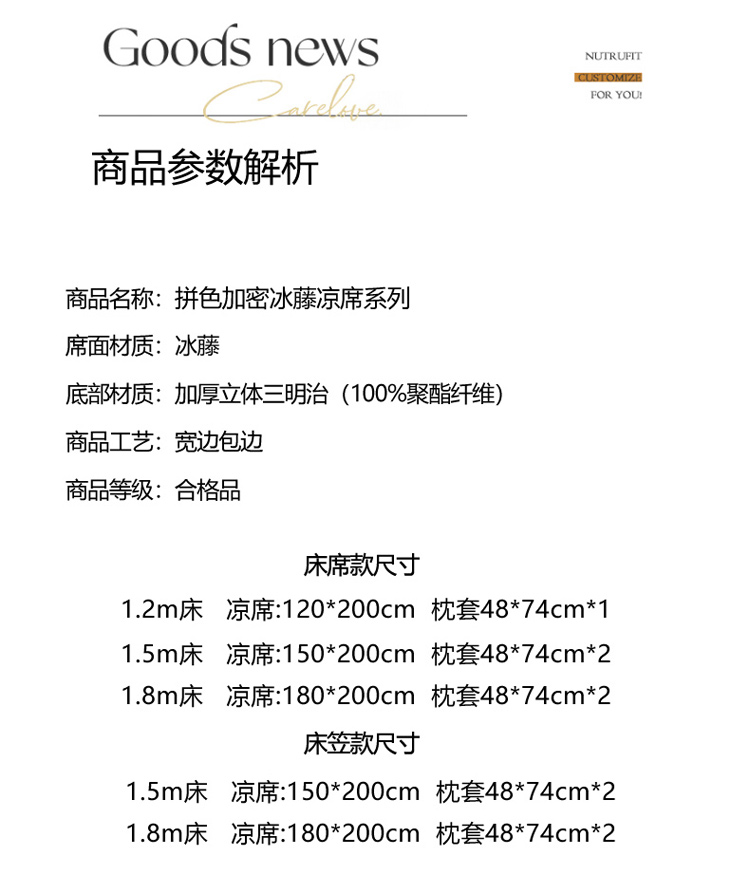 凉席:150*200*1 枕套:48*74*2 | ¥100.00 |