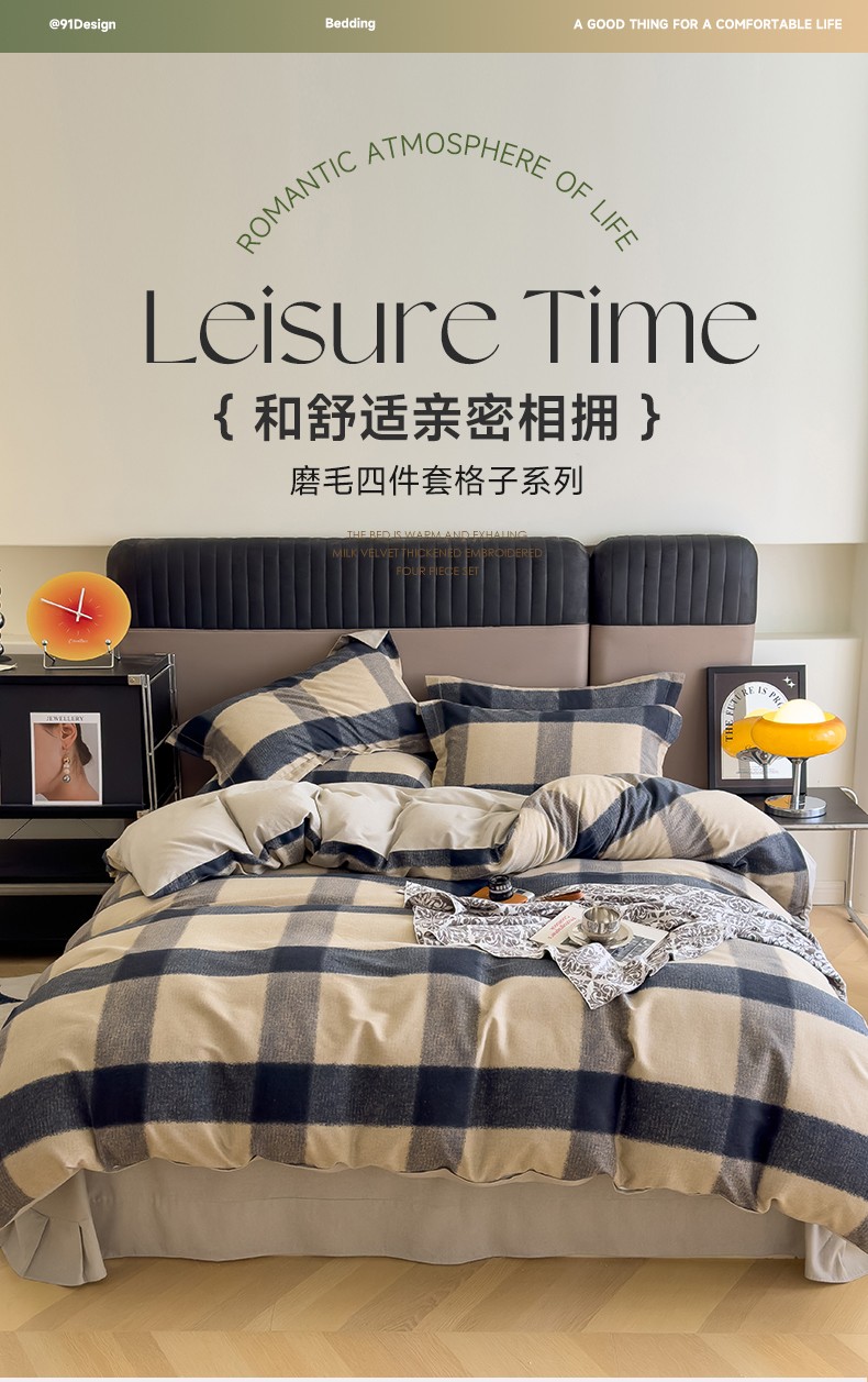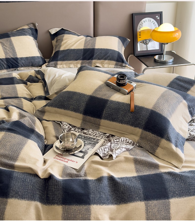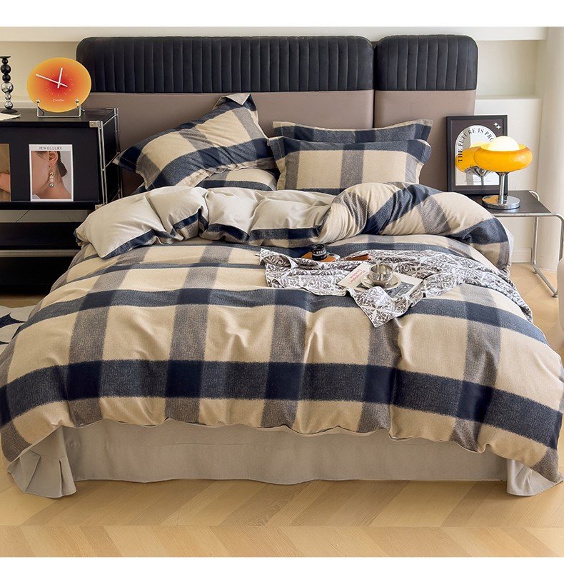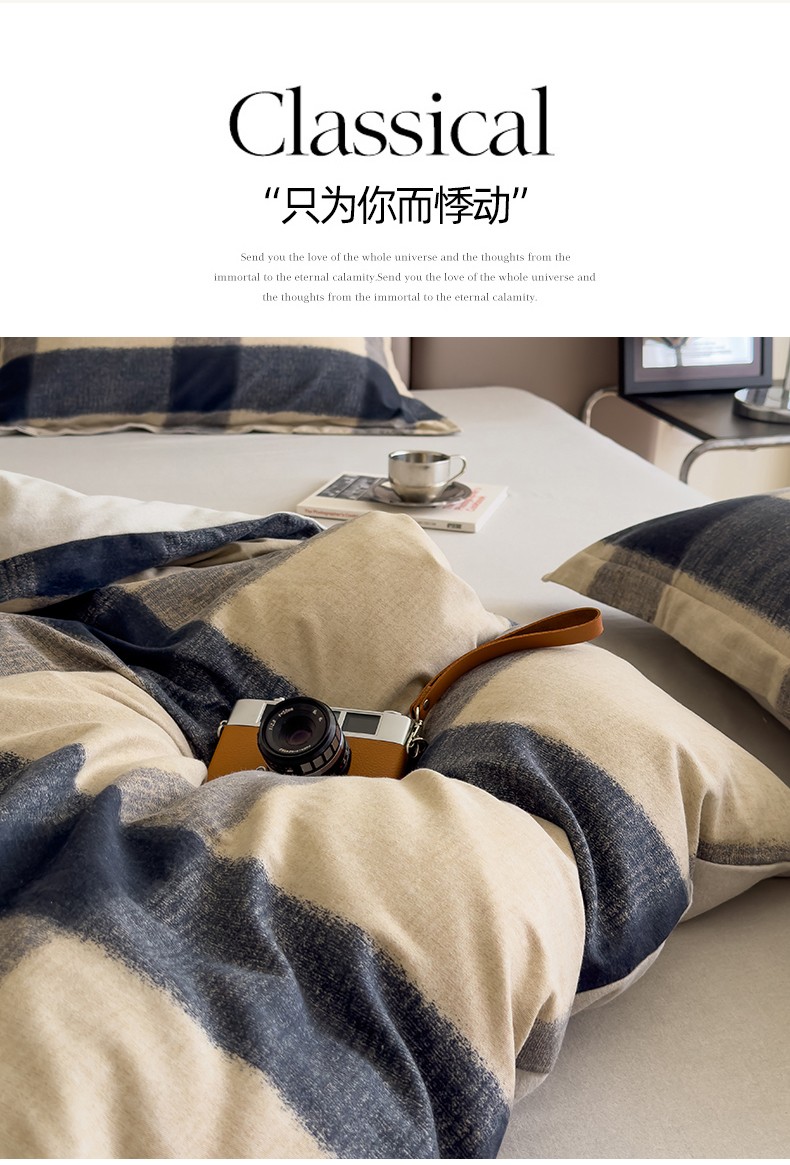 佰亿莱 2024直播爆款简约风全棉磨毛四件套格子系列 黑大格