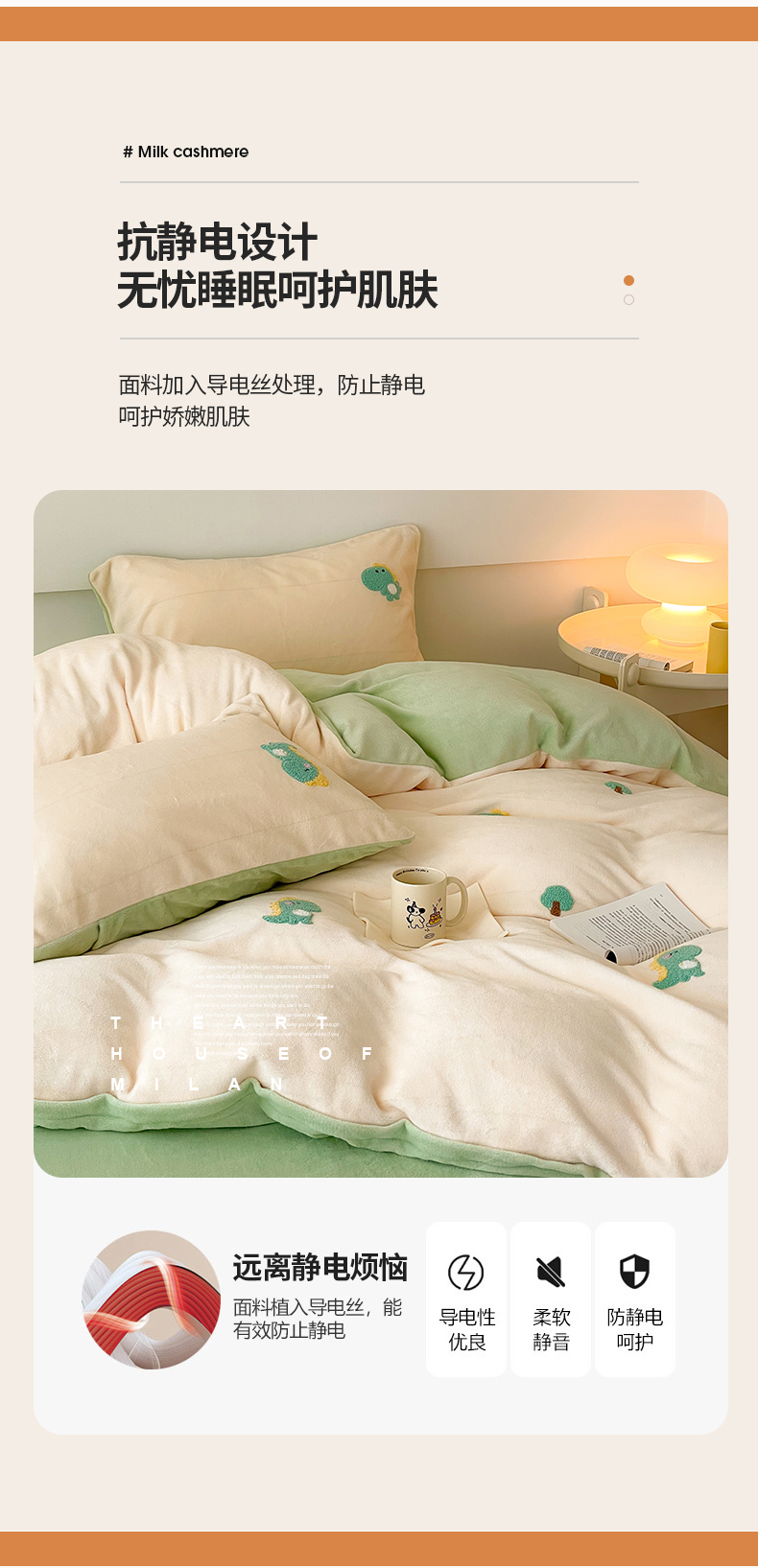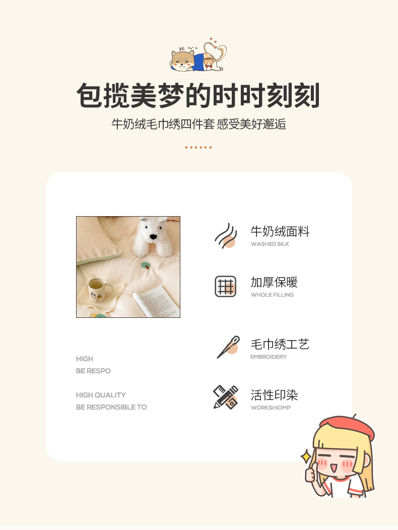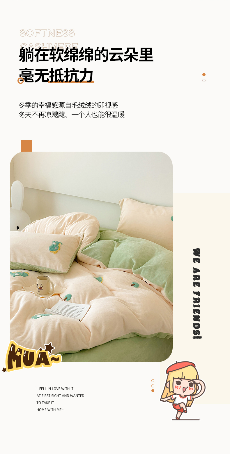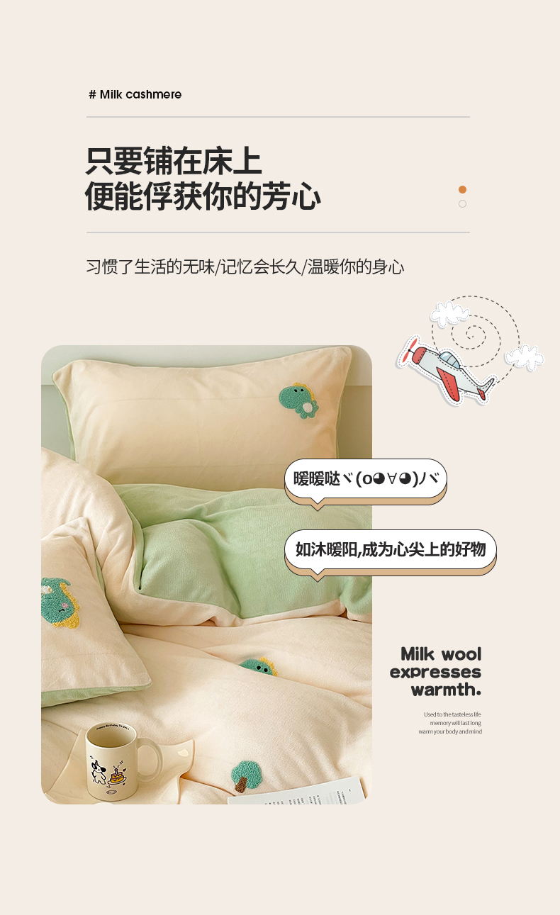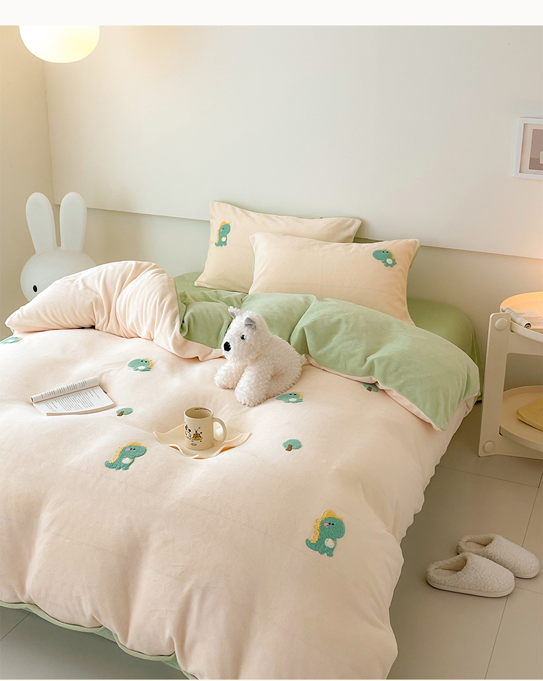 商品名称:沐棉 2023新款高克重牛奶绒毛巾绣四件套 小恐龙