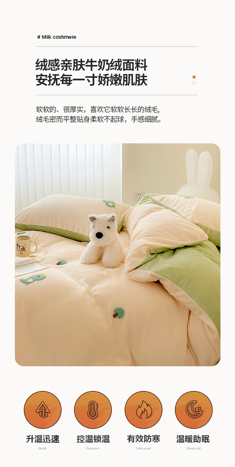 (总)沐棉家居 2025新款字母刺绣雕花牛奶绒四件套,花园·粉,花园·奶咖,花园·绿