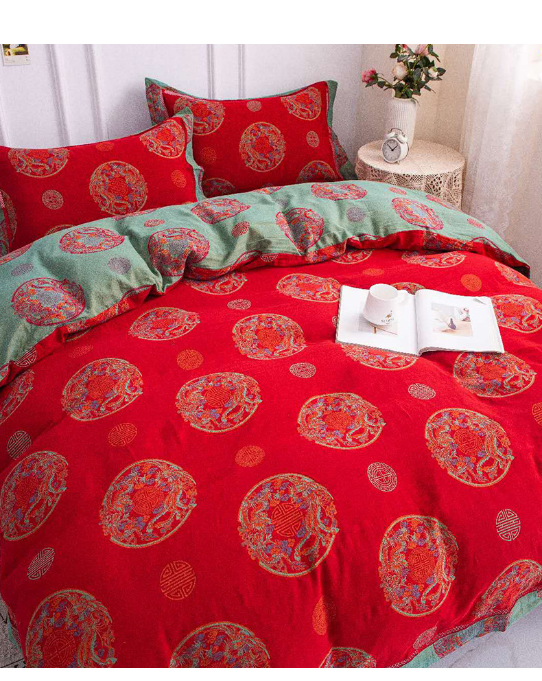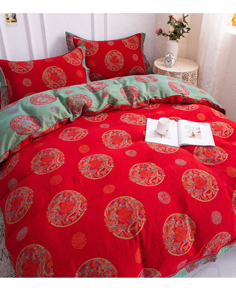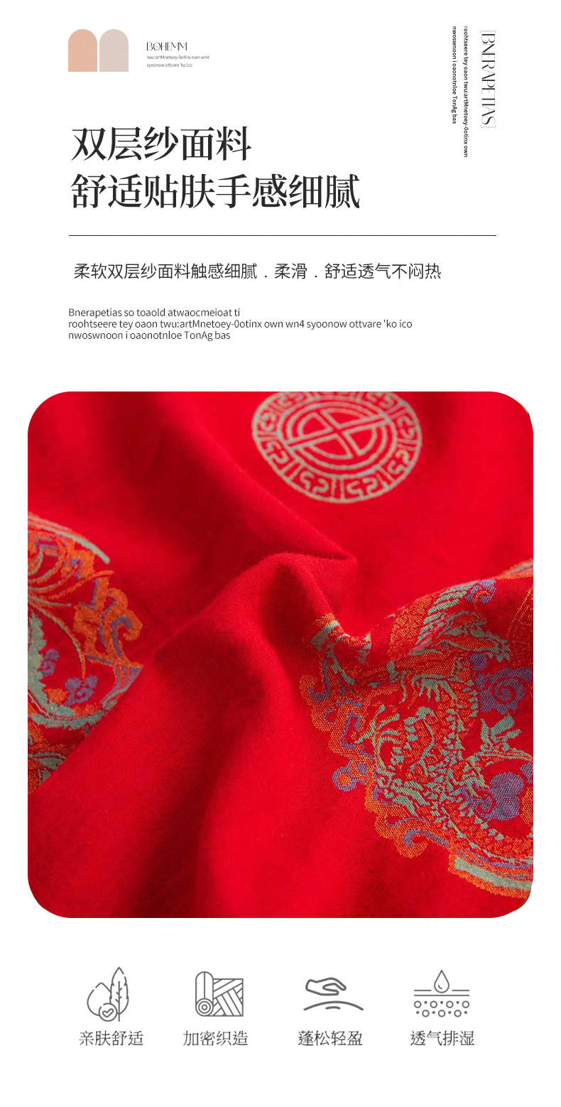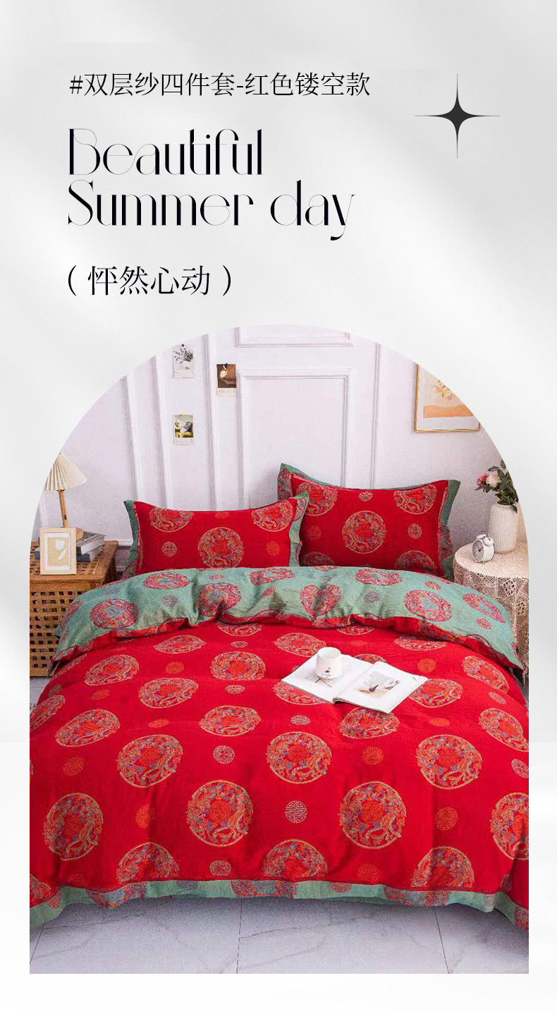 商品名称:双层纱家居 2023新款红色镂空款双层纱四件套 龙凤呈祥