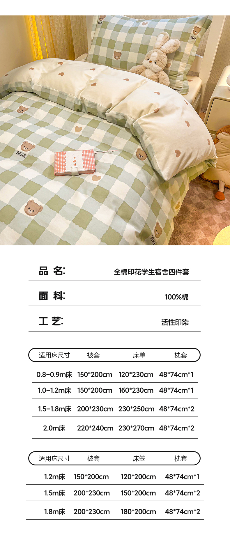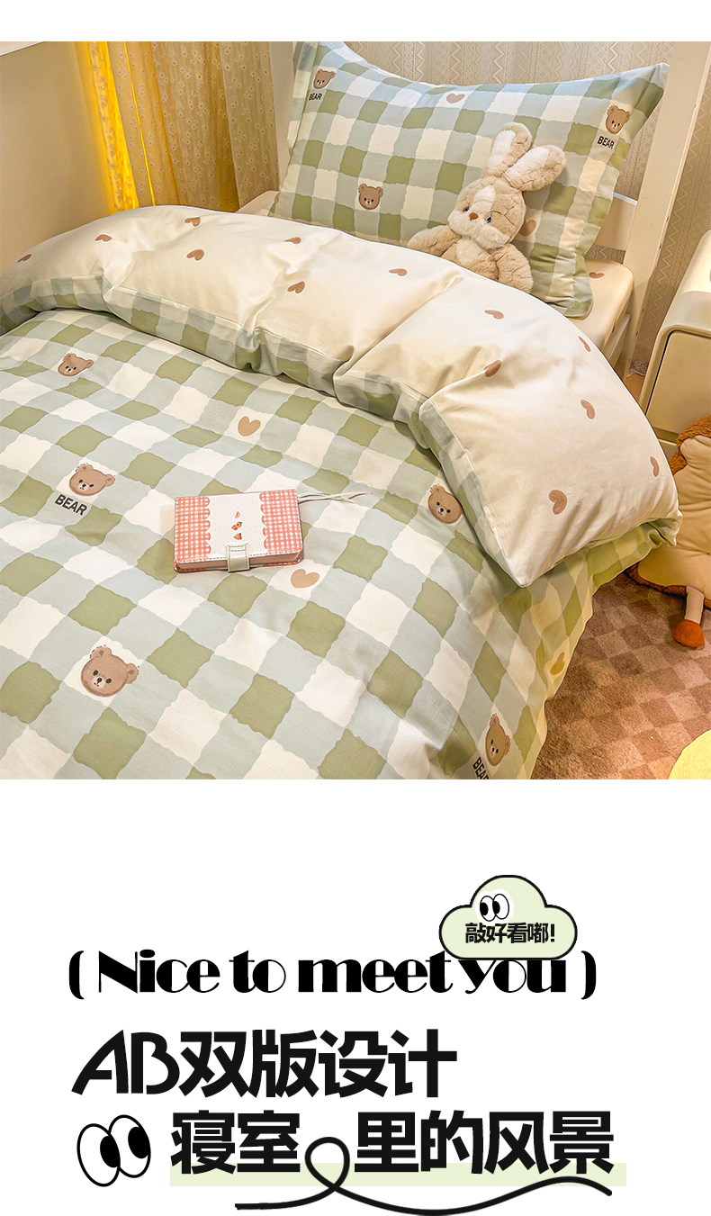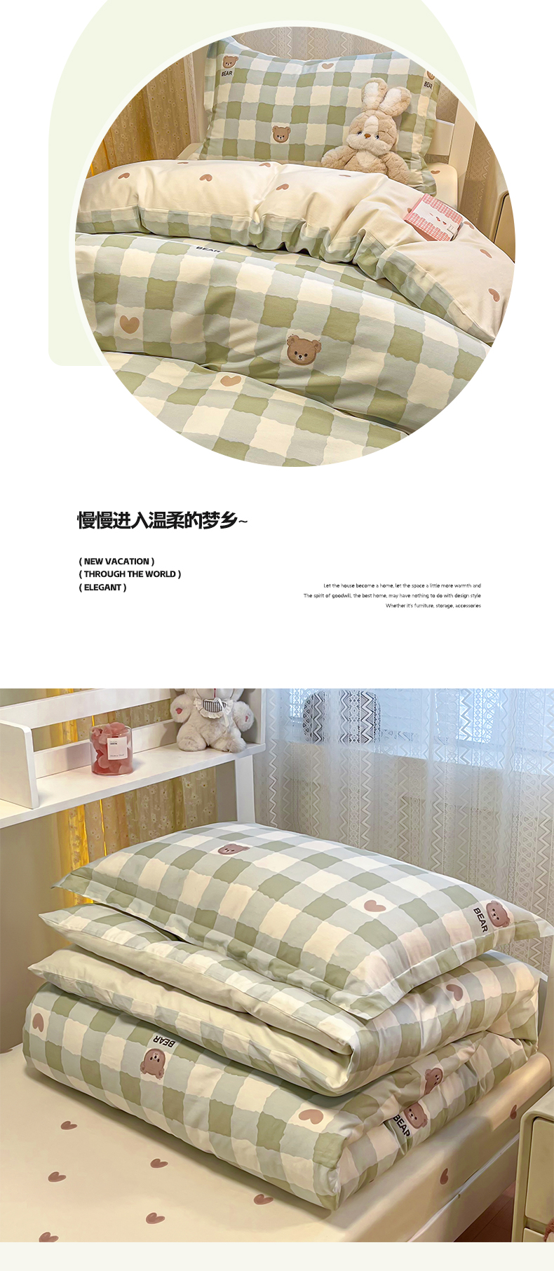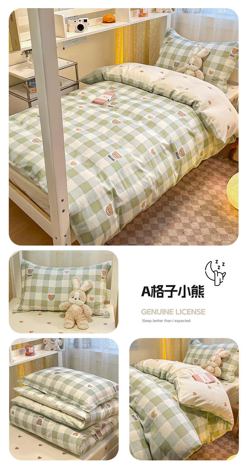 当前位置: 91家纺网 > 商品网购 > 床品套件 > 四件套 > 全棉普通四件套 > 2024新款小清新全棉印花学生宿舍三件套-68系列 A格子小熊