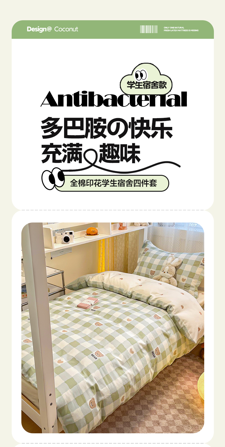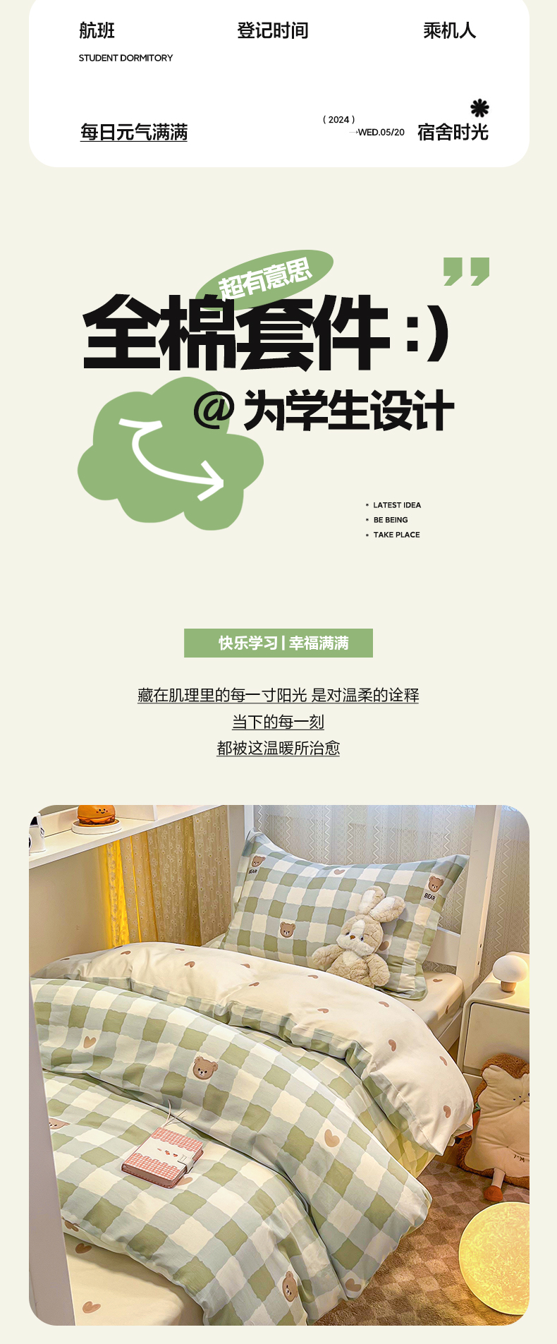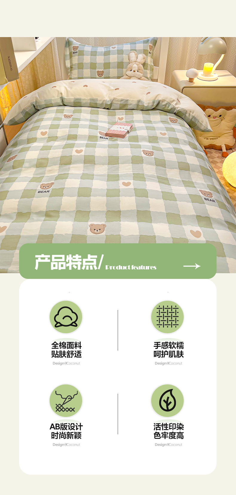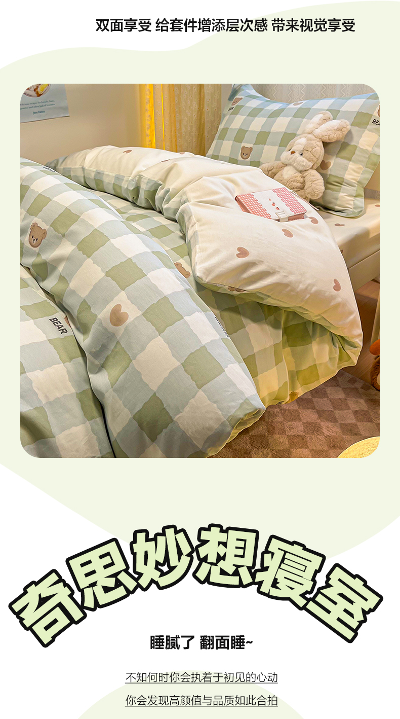 当前位置: 91家纺网 > 商品网购 > 床品套件 > 四件套 > 全棉普通四件套 > 2024新款小清新全棉印花学生宿舍三件套-68系列 A格子小熊