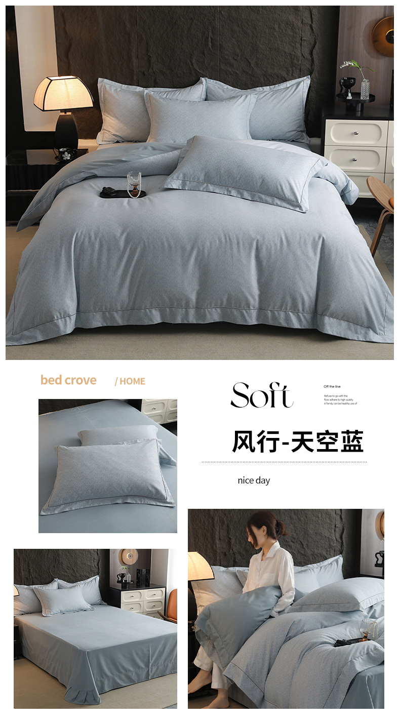 商品名称:巧玲珑 2025新款60支高端美式新疆棉四件套 风行-天空蓝