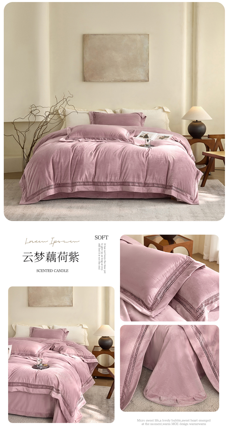 榻尚家居 2024新款加厚婴肤牛奶绒四件套-云梦 云梦-藕荷紫