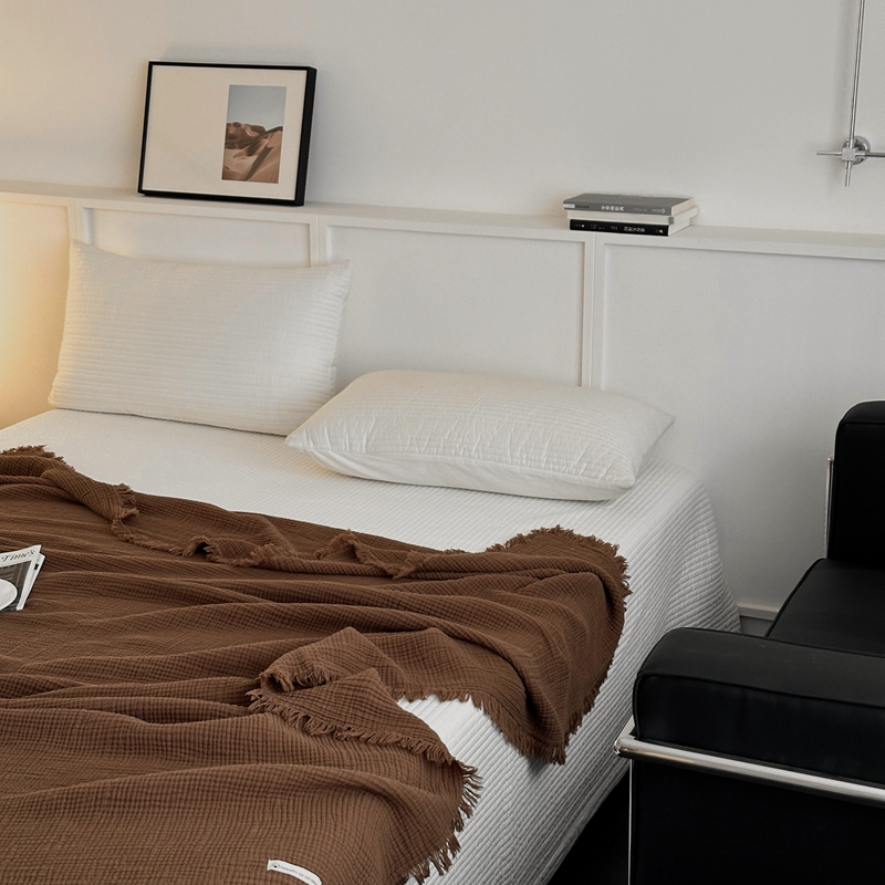 (总)山舍家居 2022新款双层纱布四件套,莱茵蓝,清绿,透白,雅灰,芥黄,裸粉,茶卡,甜白,星蓝,摩卡