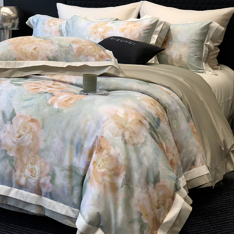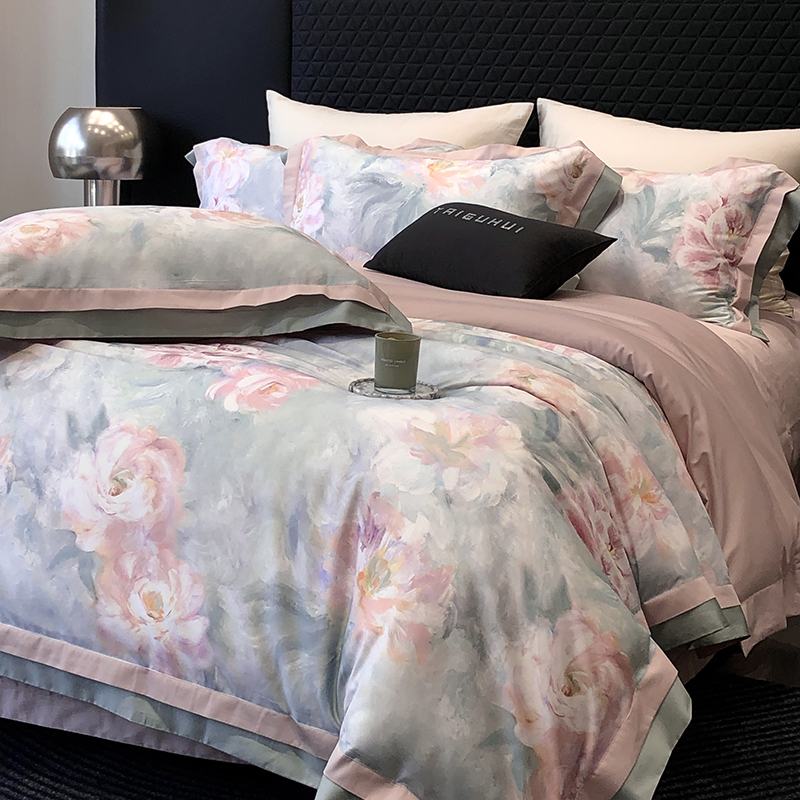 (总)太古汇家居 2025新款活性数码印花四件套,丽奥娜-松石绿,丽奥娜-杏子灰,丽奥娜-樱落紫,莉安娜-粉,莉安娜-卡其,莉安娜-绿,西莉娅-淡紫,西莉娅-粉色
