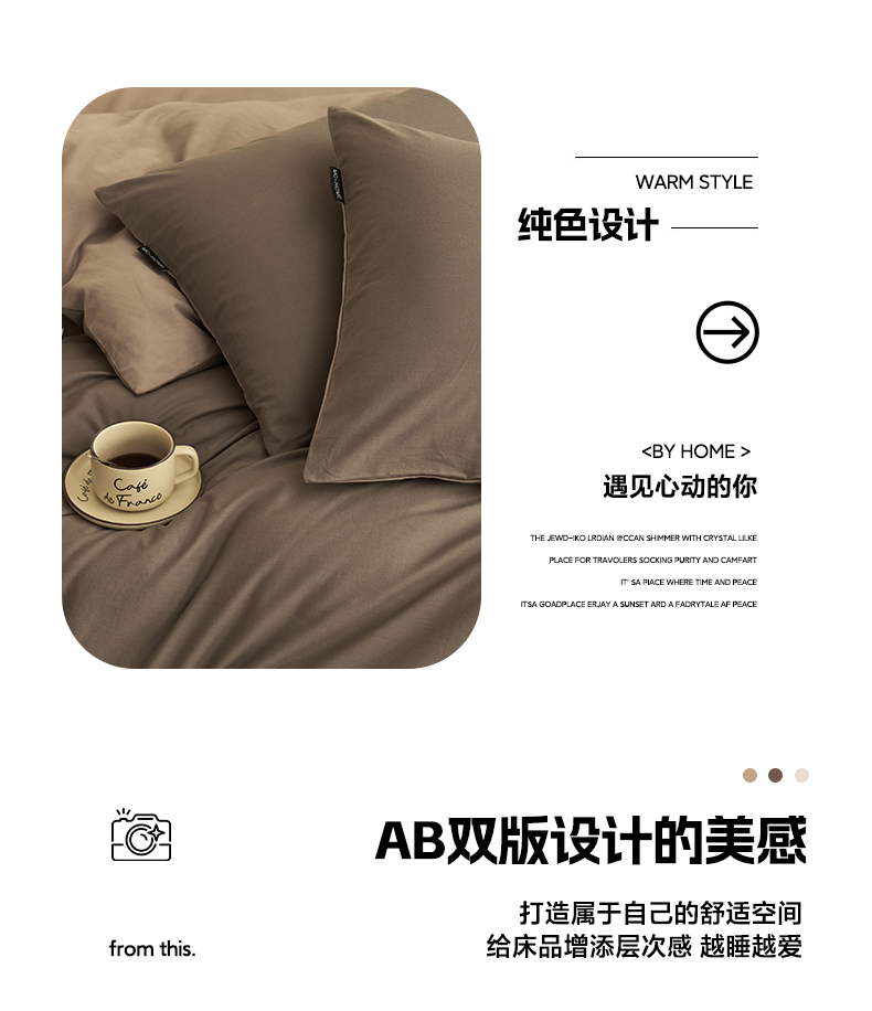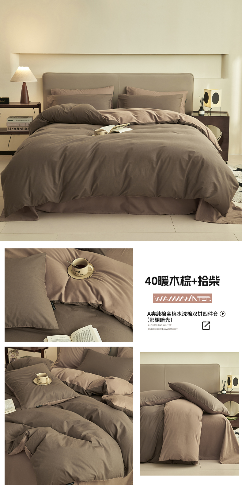 商品名称:2025新款全棉13372水洗棉双拼四件套(影棚暗光) 40暖木棕+拾柴
