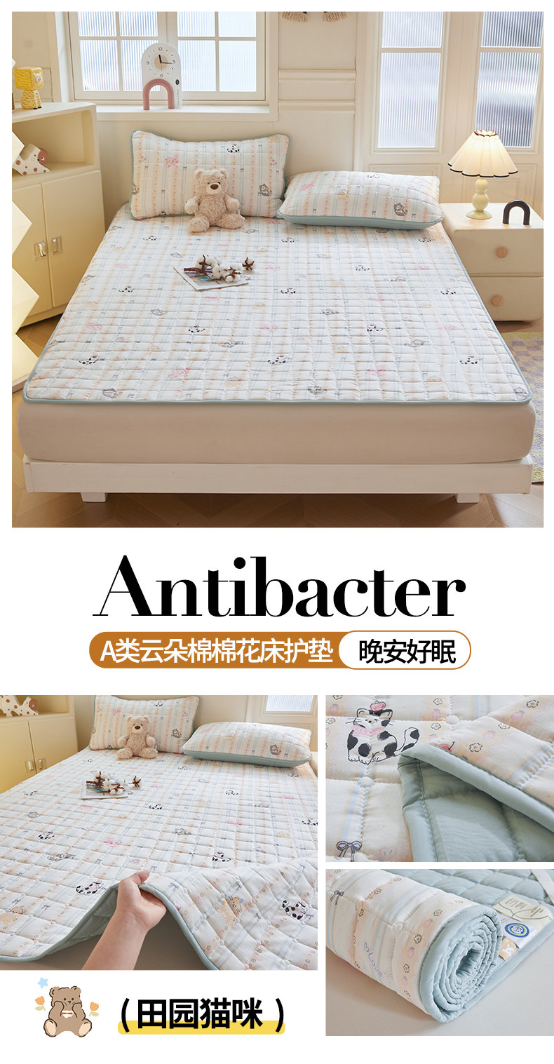 当前位置: 91家纺网 > 商品网购 > 床垫/床褥 > 普通床垫 > 魅图家纺 2025新款A类云朵棉抗菌棉花床护垫 田园猫咪