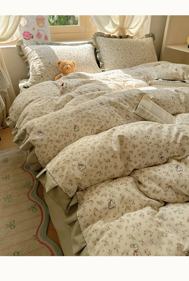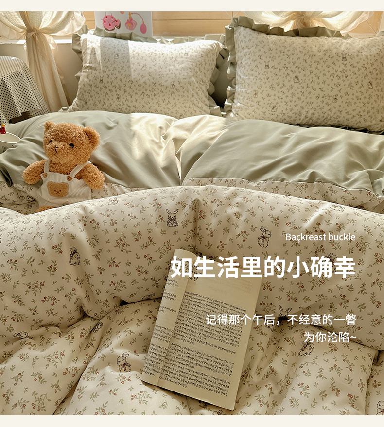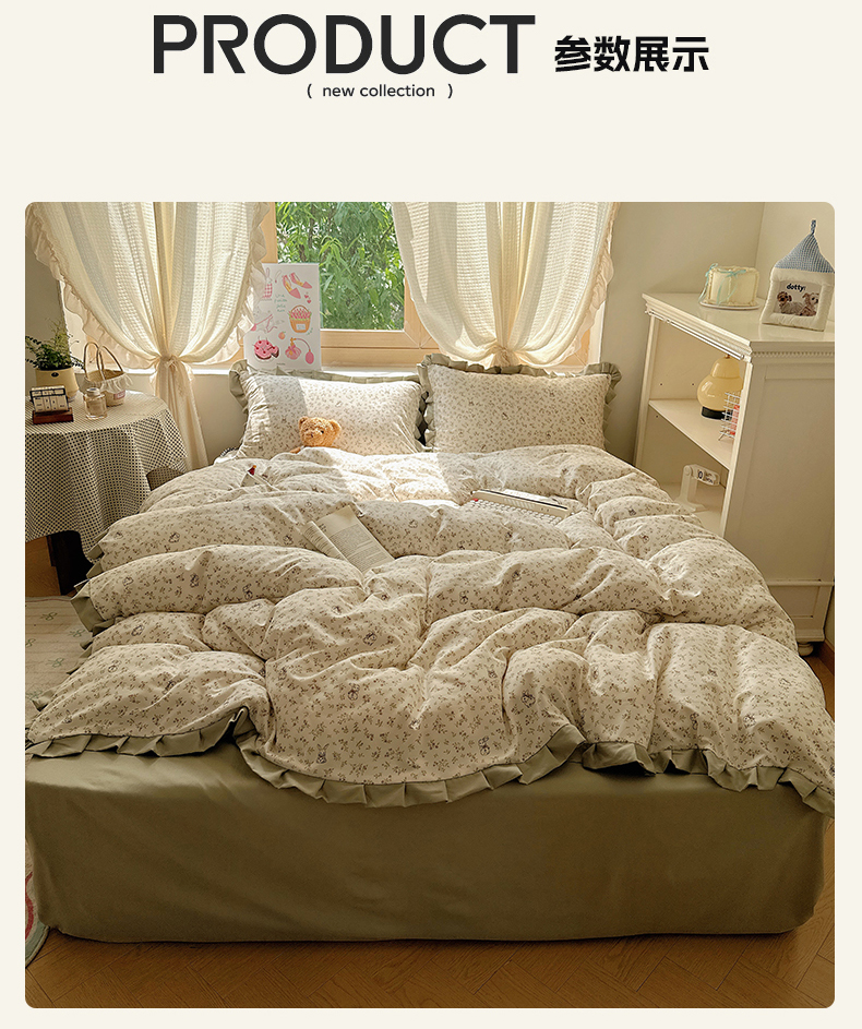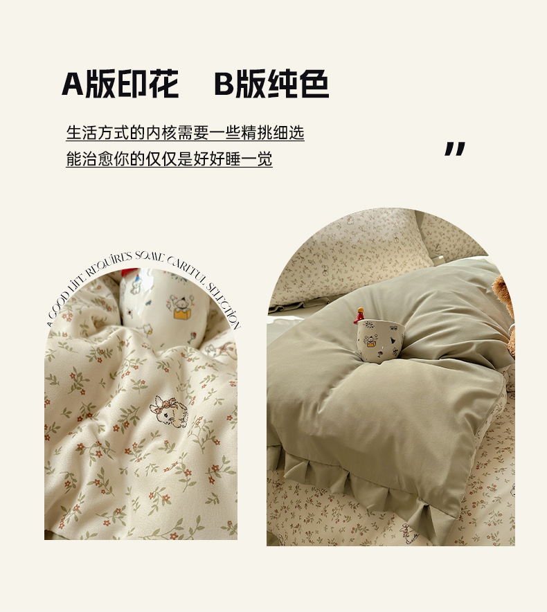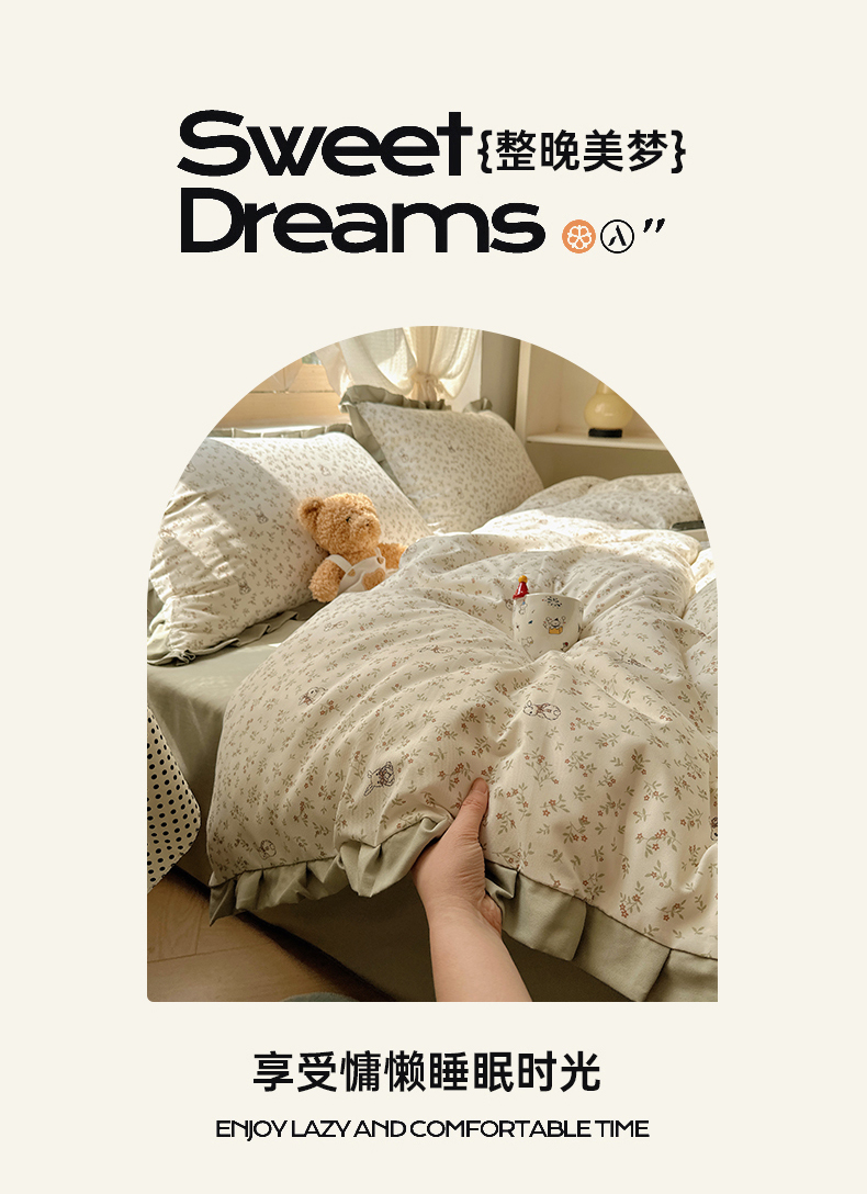 当前位置: 91家纺网 > 商品网购 > 床品套件 > 四件套 > 双层纱四件套 > 韩巢家纺 2025新款针织双层纱花边款被套直播热销款四件套学生宿舍床单三件套-(提供卖家秀) 花田薇