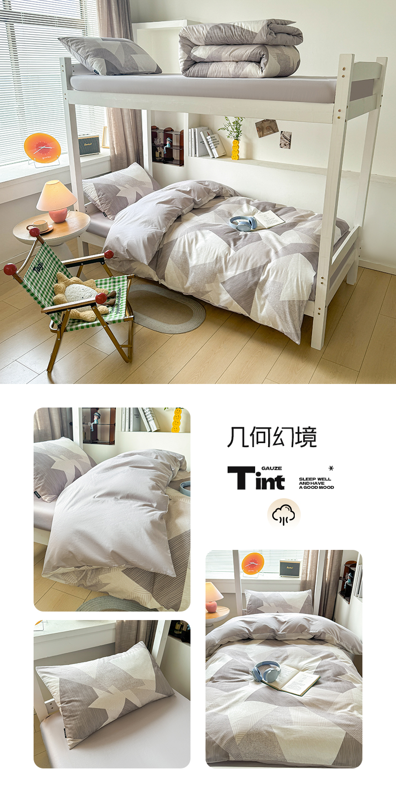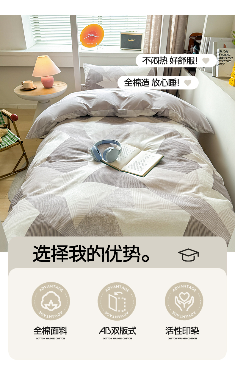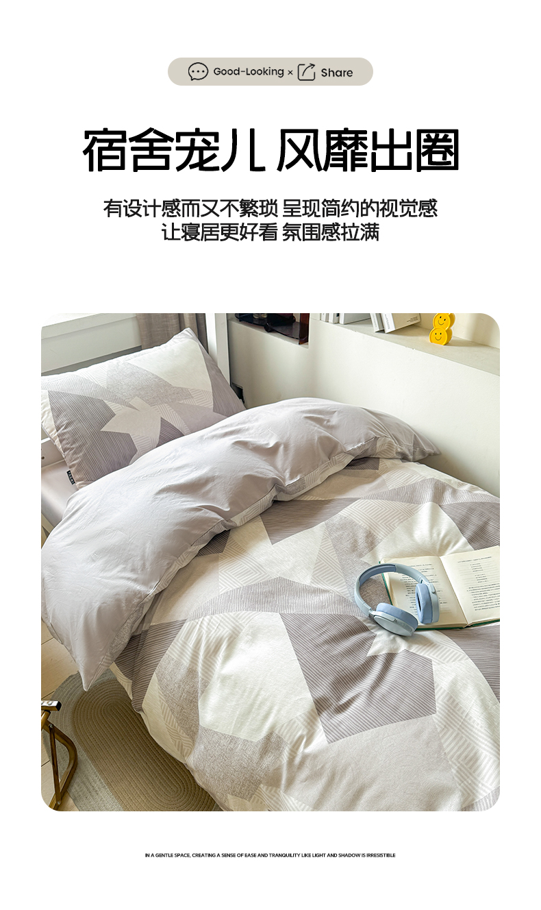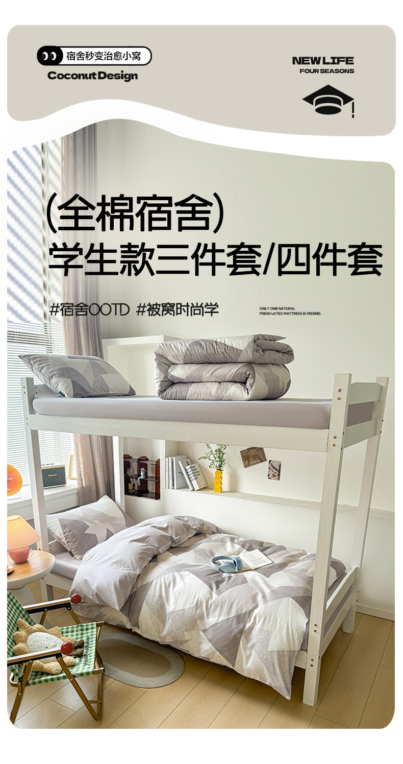 当前位置: 91家纺网 > 商品网购 > 床品套件 > 四件套 > 全棉普通四件套 > 涵宸2025新款全棉宿舍学生款三件套四件套 几何幻境