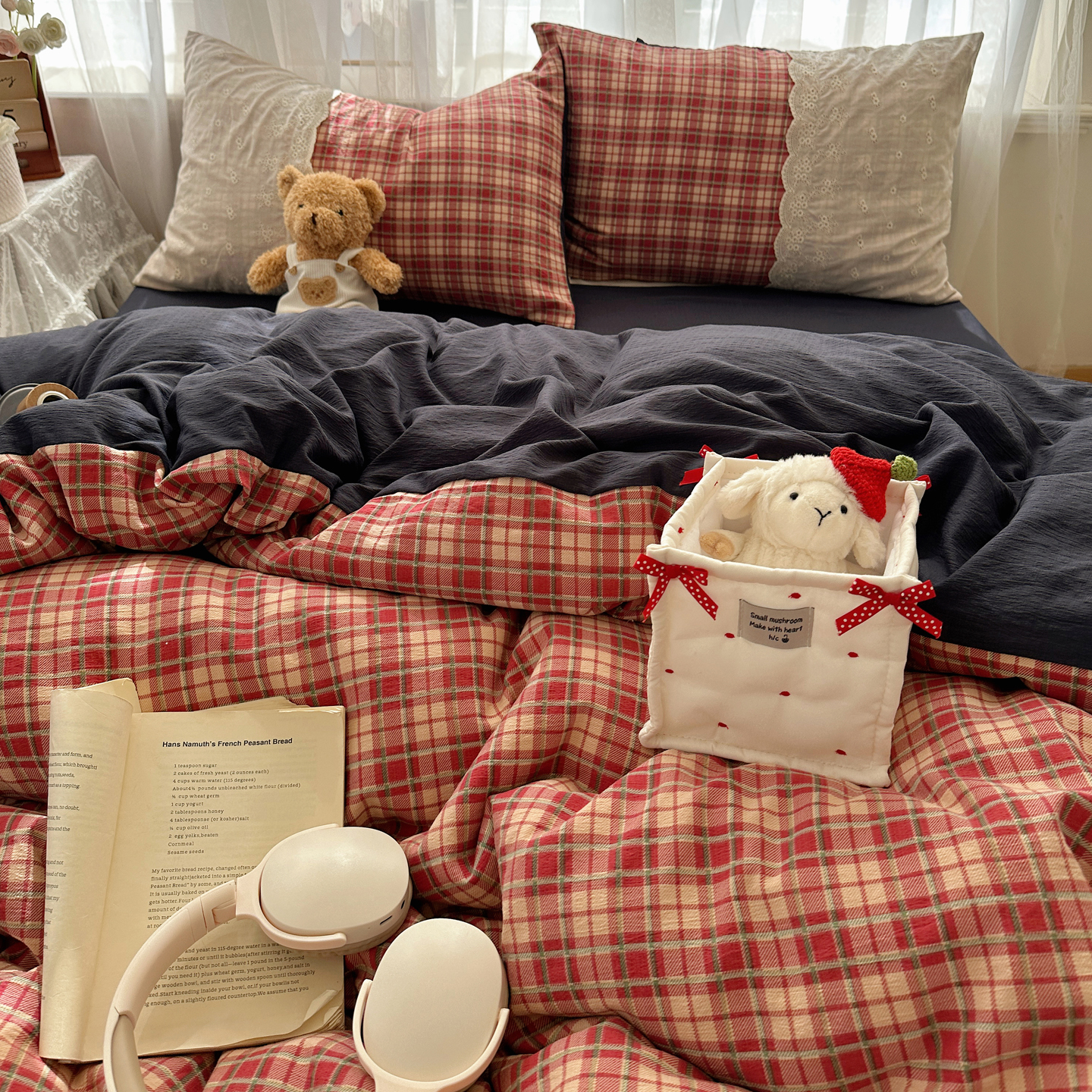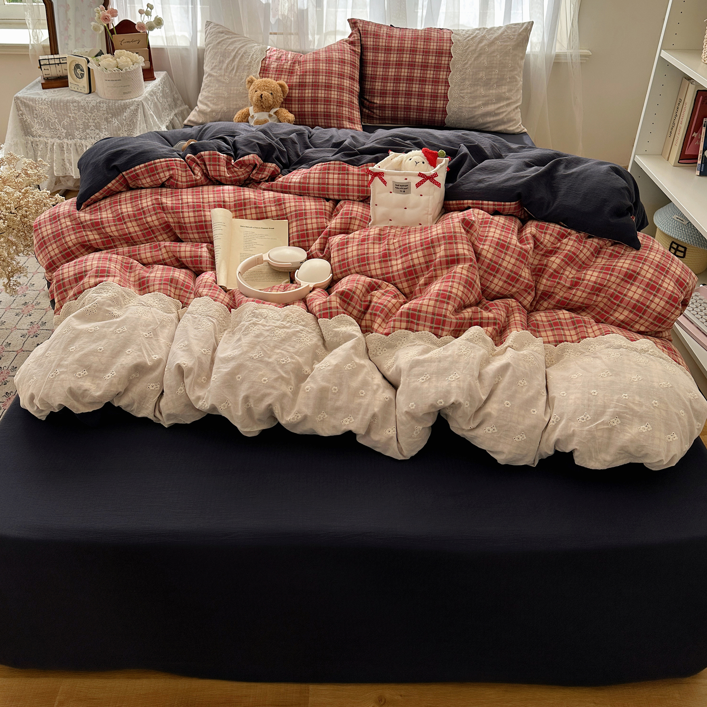 当前位置: 91家纺网 > 商品网购 > 床品套件 > 四件套 > 其它四件套 > 顾里家纺 2025新款韩系ins复古蕾丝格纹套件四件套 安吉小姐