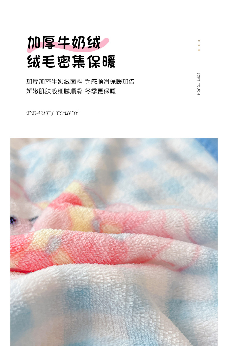 商品名称:富米莱(原臻工厂) 2025新款正版授权三丽鸥高克重卡通牛奶绒毛毯多功能毯子盖毯一搭配亮色包边 粉色回忆录