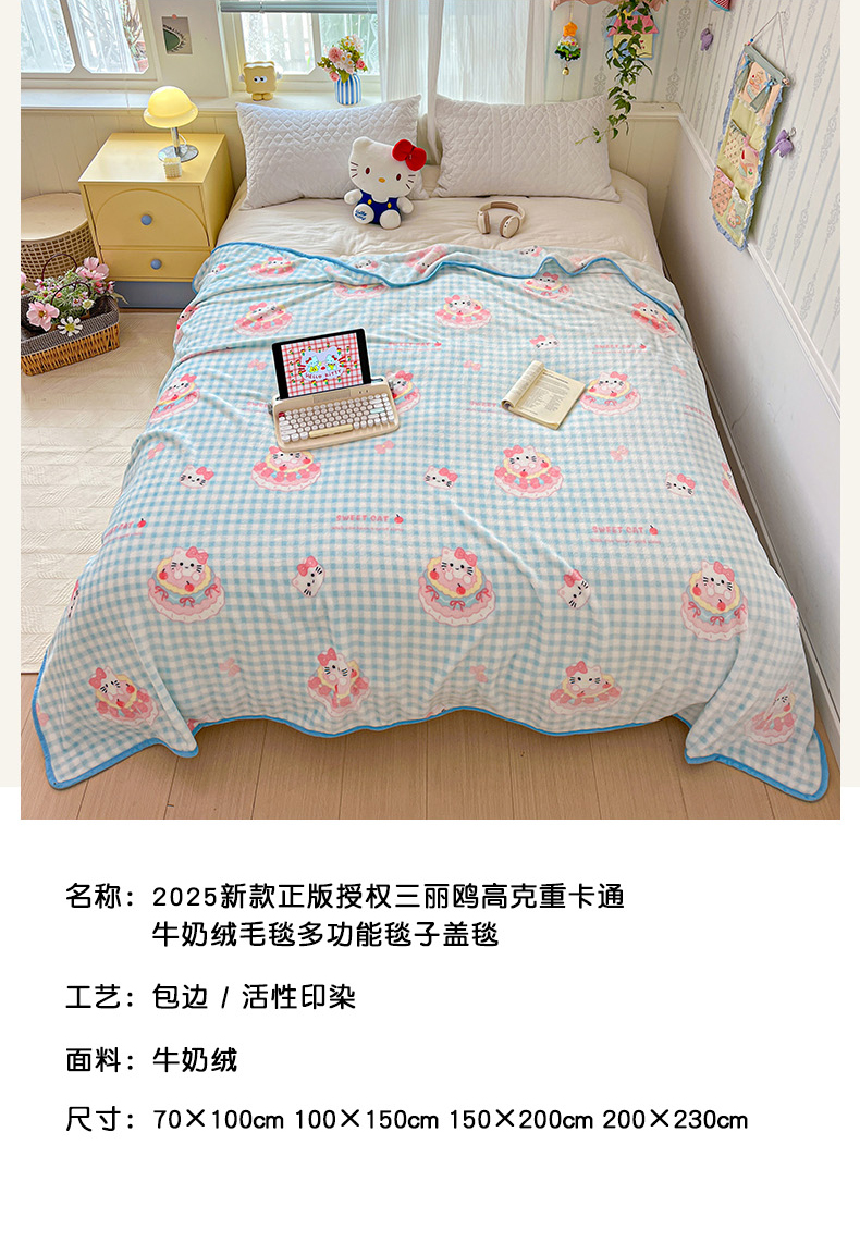 富米莱(原臻工厂) 2025新款正版授权三丽鸥高克重卡通牛奶绒毛毯多功能毯子盖毯一搭配亮色包边 粉色回忆录