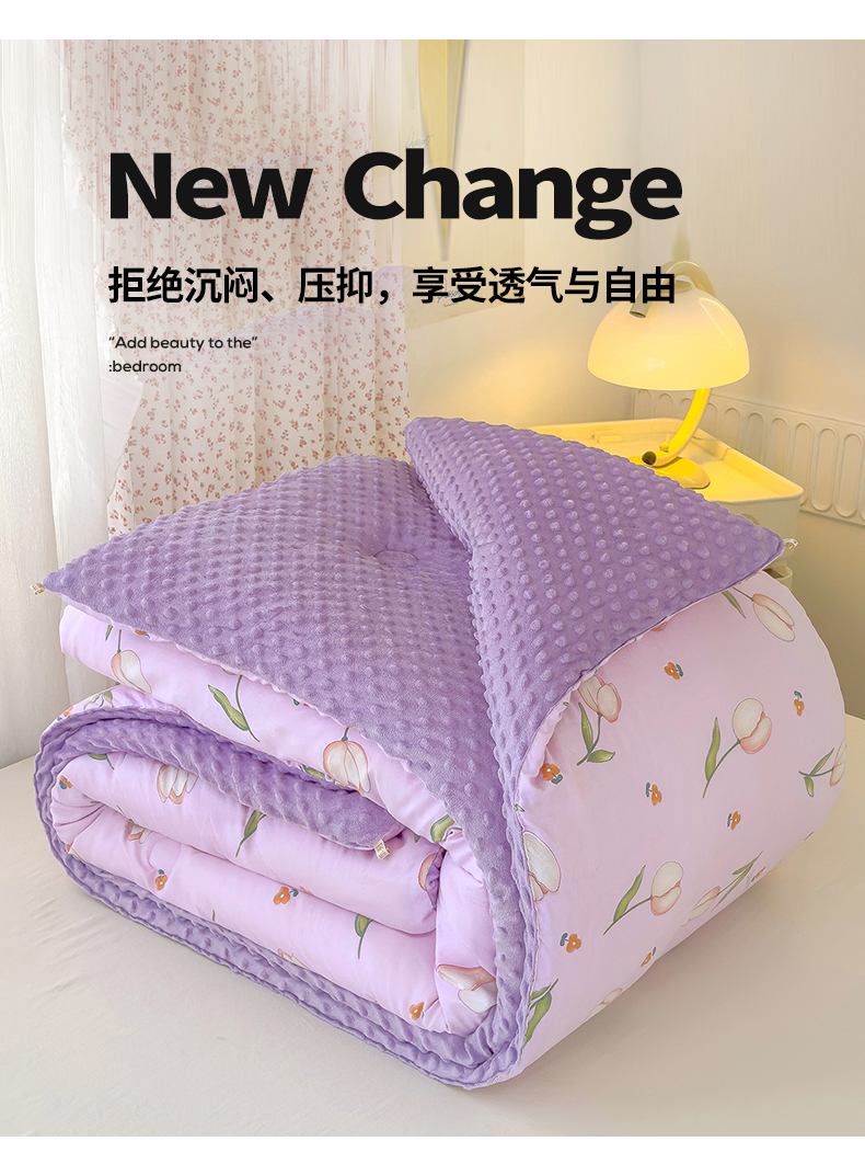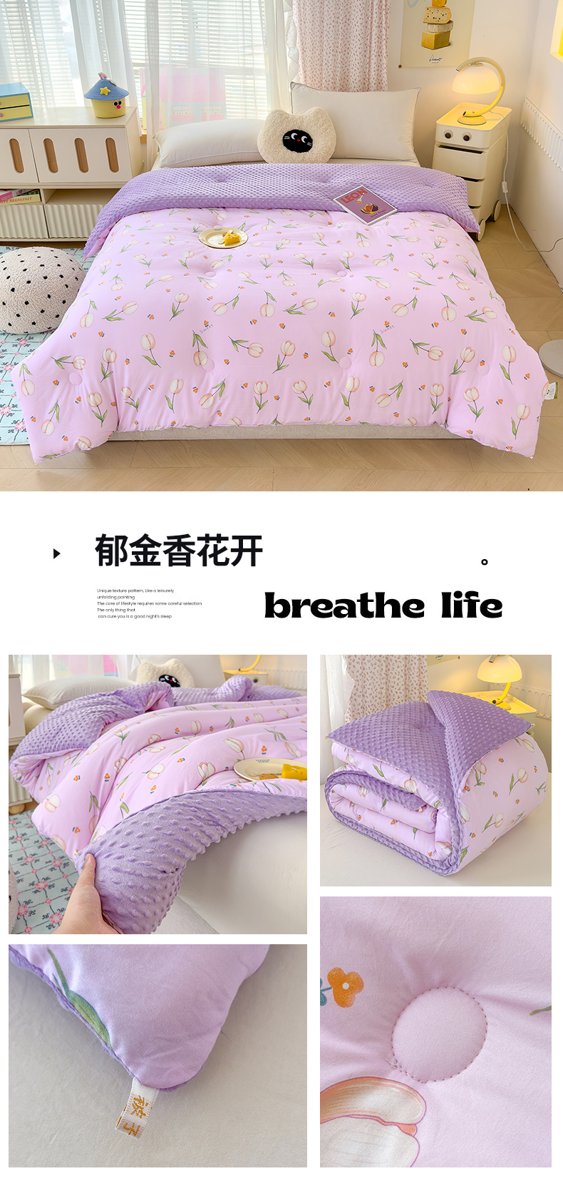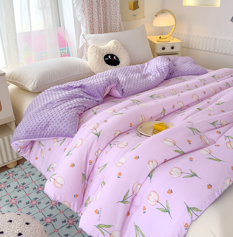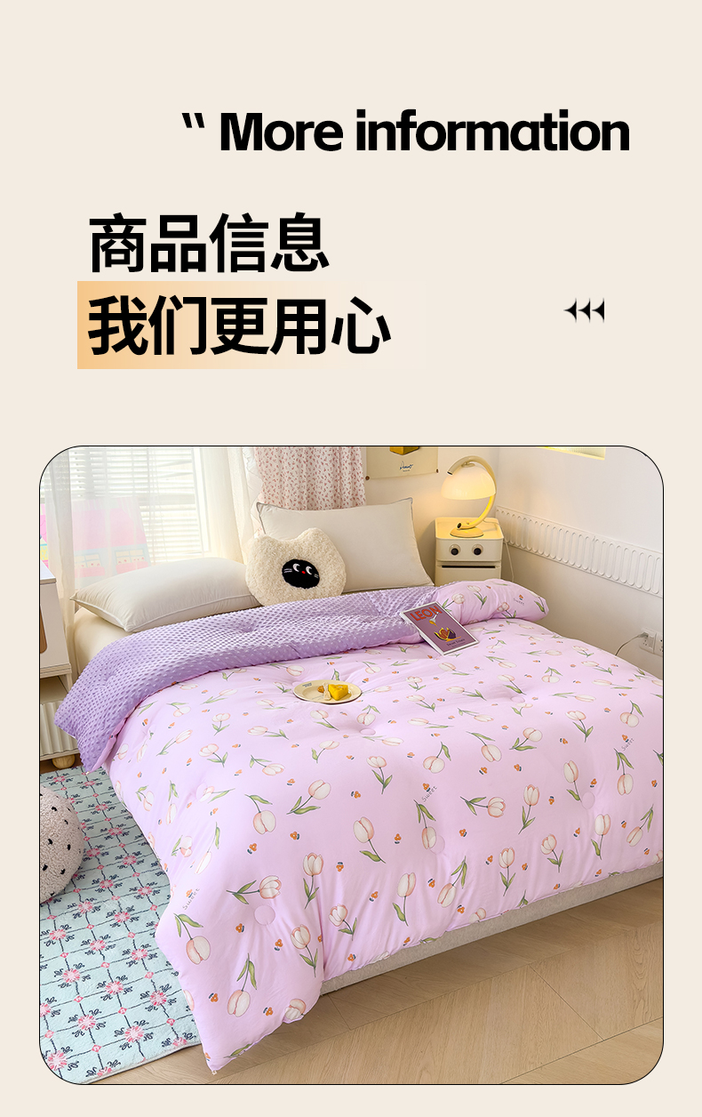 • 91家纺网 家纺一手货源 找家纺 爱宝被业 2025新款A类水洗棉双层纱豆豆绒被芯 郁金香花开