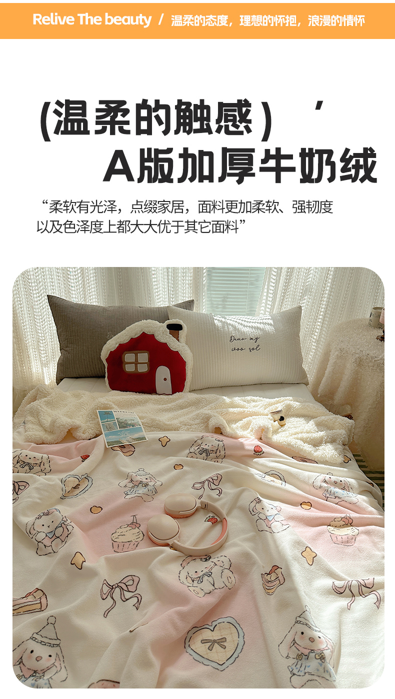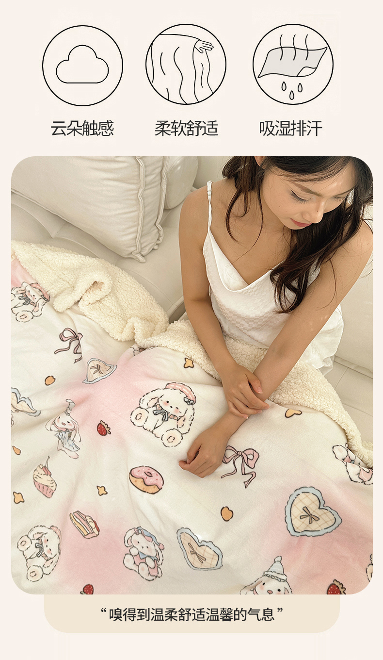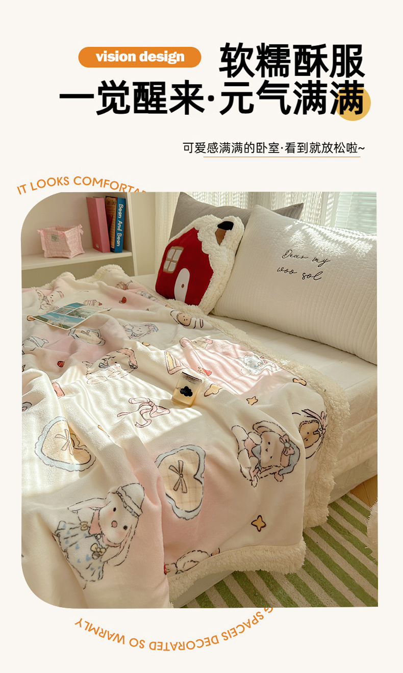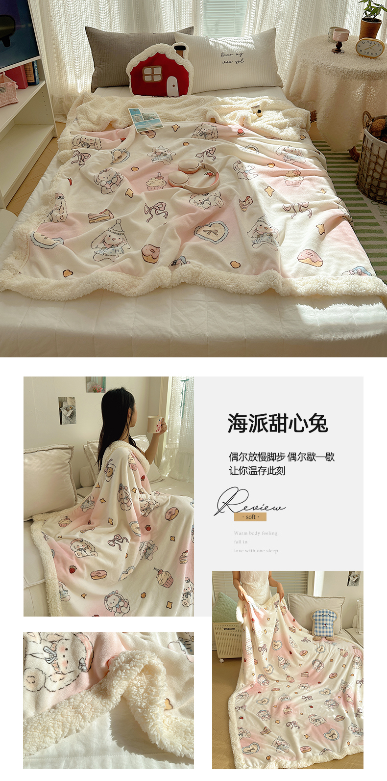 商品名称:六巷胡同 2025新款INS卡通A类牛奶绒羊羔绒毛毯毯子 海派甜心兔