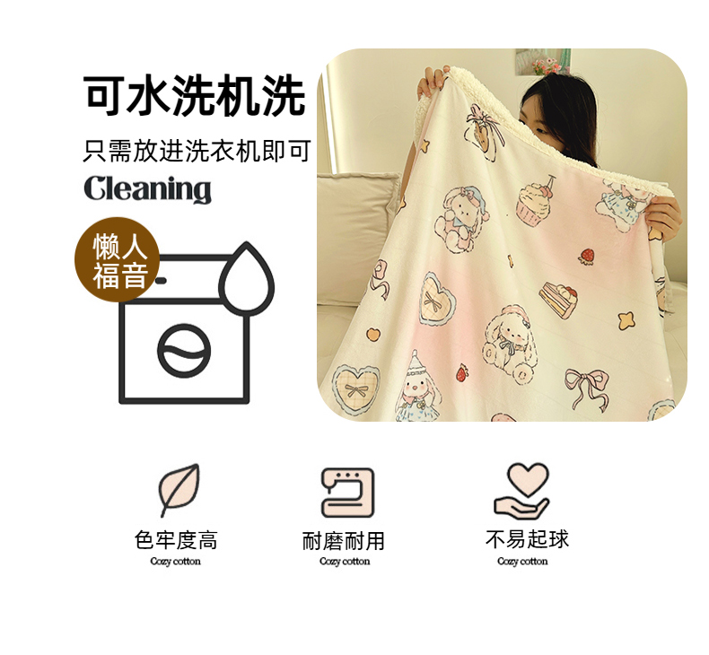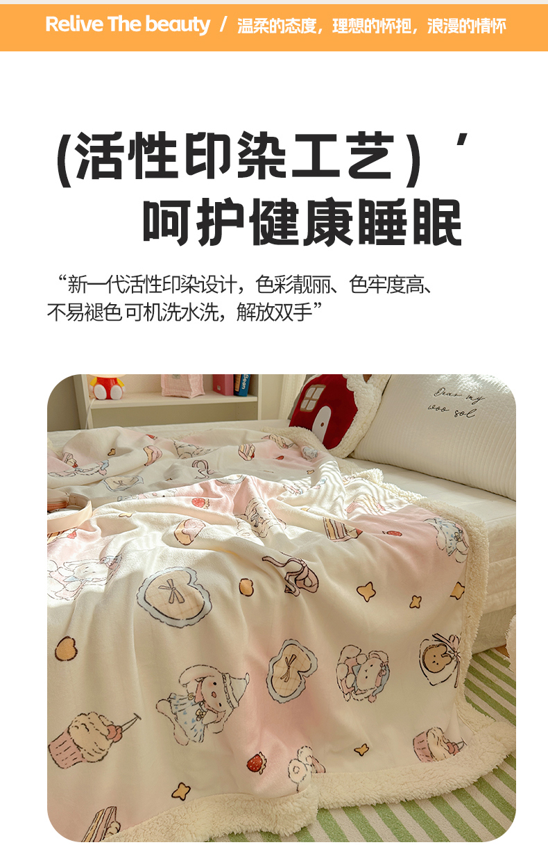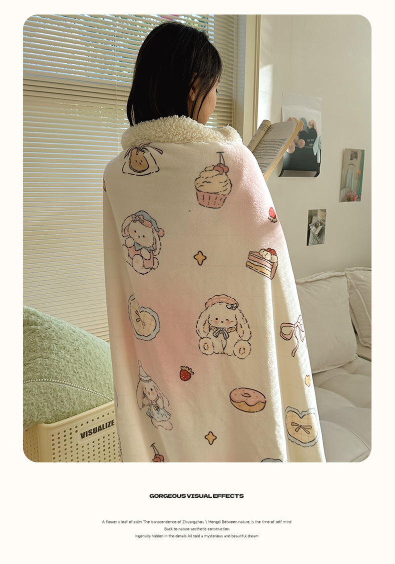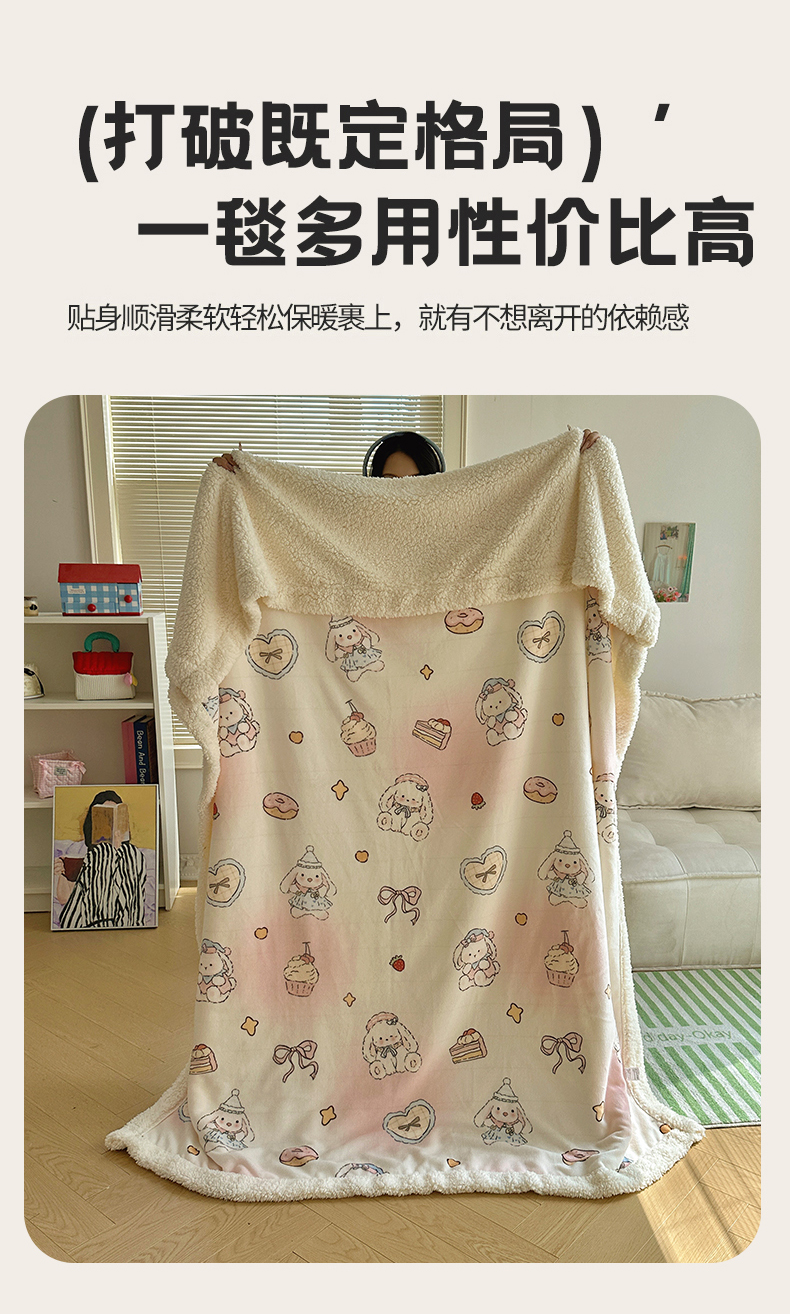商品名称:六巷胡同 2025新款INS卡通A类牛奶绒羊羔绒毛毯毯子 海派甜心兔