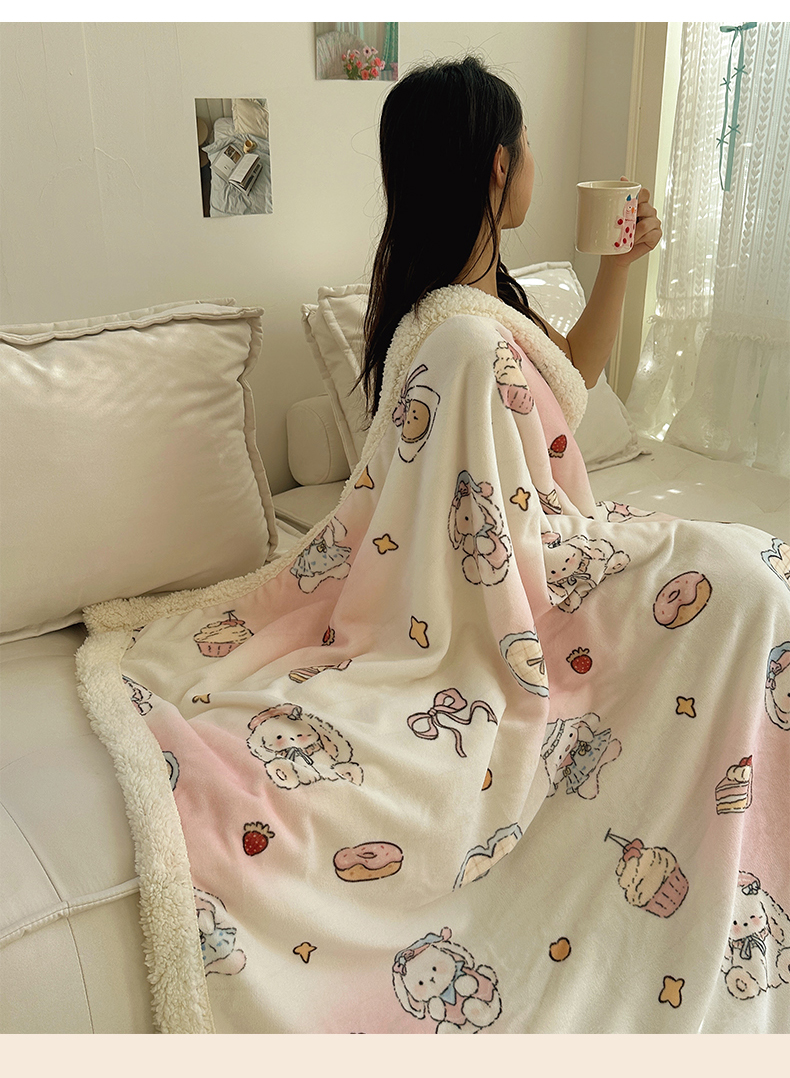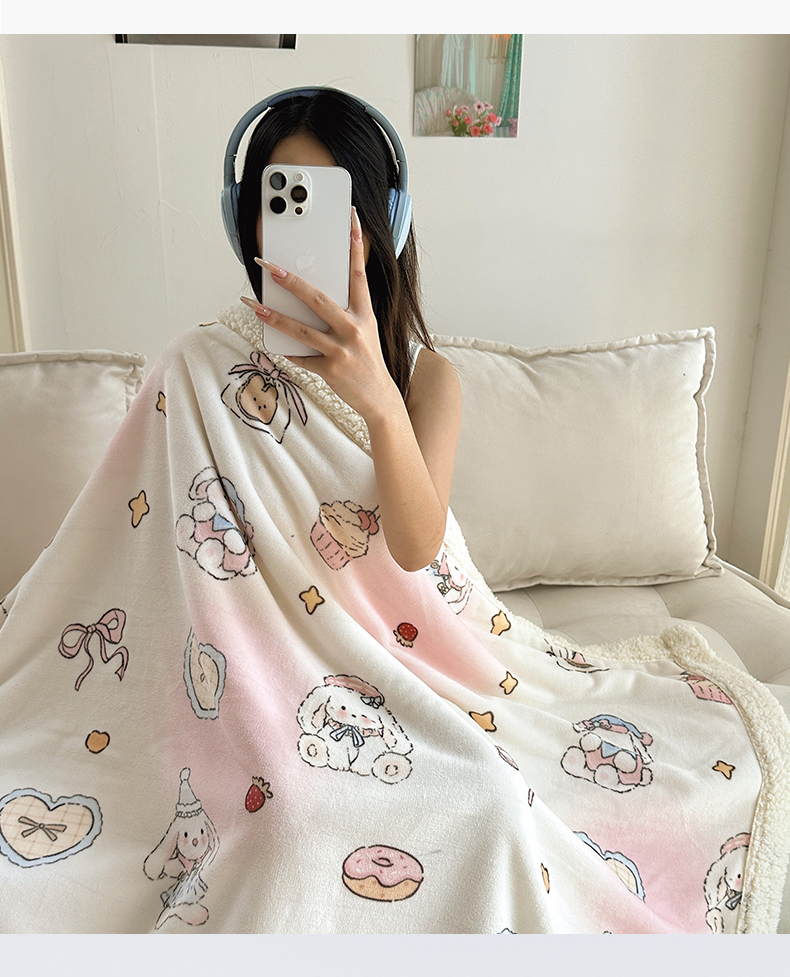 六巷胡同 2025新款INS卡通A类牛奶绒羊羔绒毛毯毯子 海派甜心兔