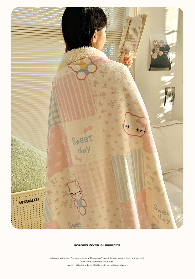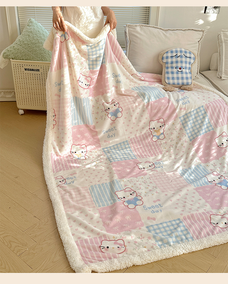 六巷胡同 2025新款INS卡通A类牛奶绒羊羔绒毛毯毯子 软萌碎花猫