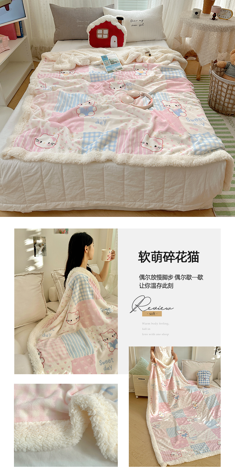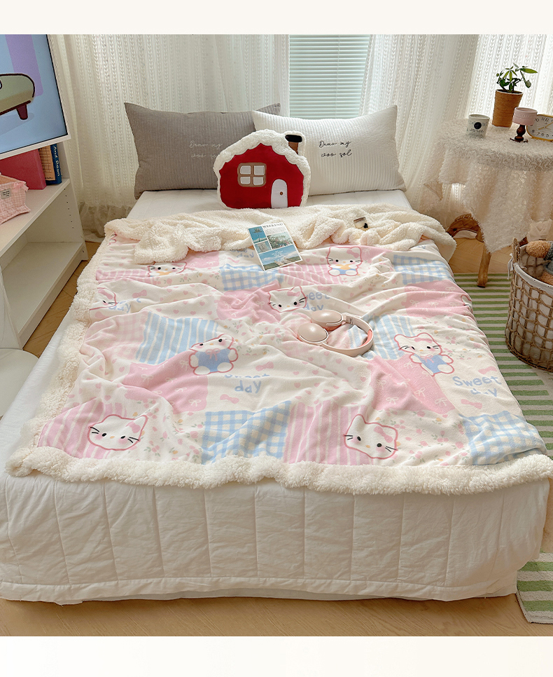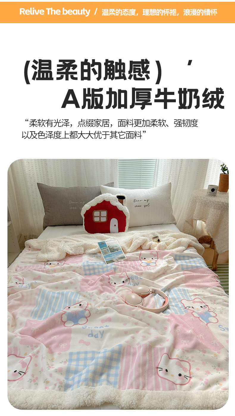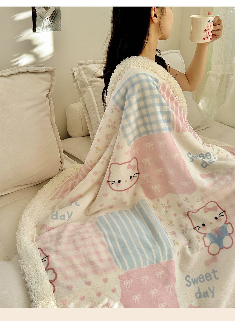 商品名称:六巷胡同 2025新款INS卡通A类牛奶绒羊羔绒毛毯毯子 软萌碎花猫
